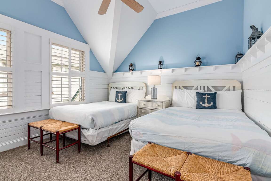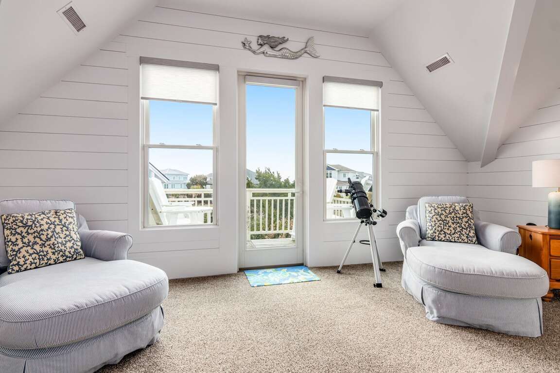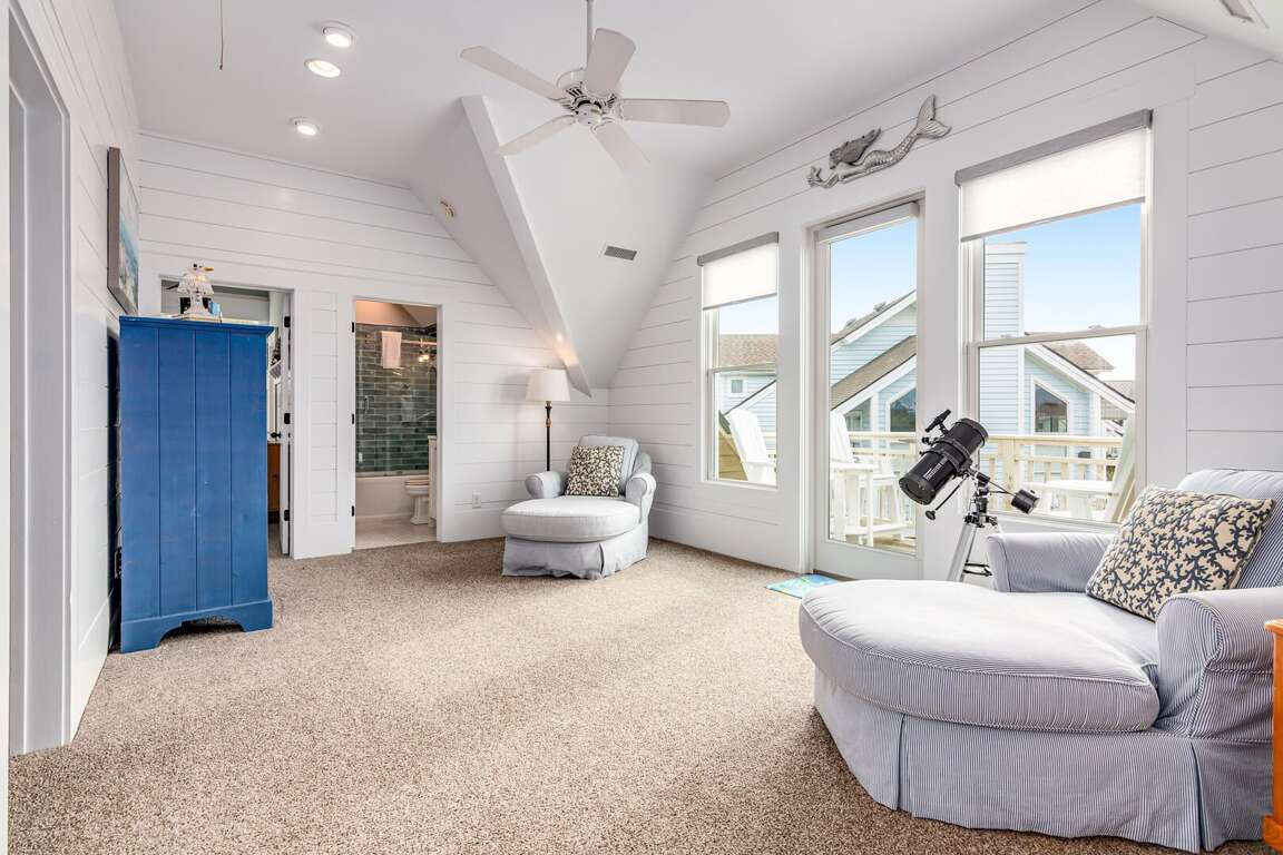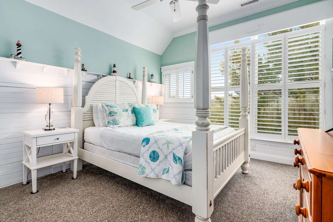 Upstairs, are two more bedrooms, a loft and an awe-inspiring ocean-view deck with comfortable seating. The first bedroom up here is furnished with two Double beds and uses the full bath conveniently located across the hall. The Queen Suite boasts its own full bath and a large closet. Don't miss the loft and the ocean-view deck-two terrific spots for reading, napping or just hanging out with your favorite drink! Rental of this property includes usage of two golf carts: a four-passenger and a six-passenger. If you are looking for an unforgettable vacation, Carpe (seize) Seas the Day!
