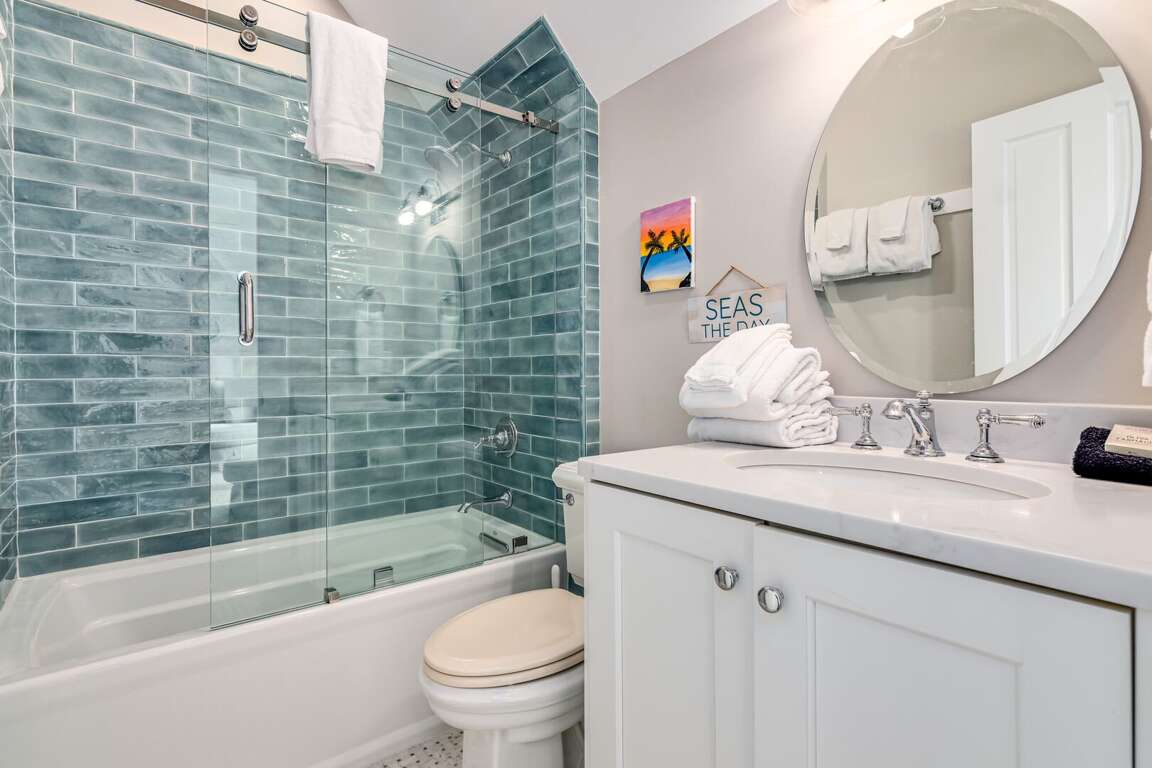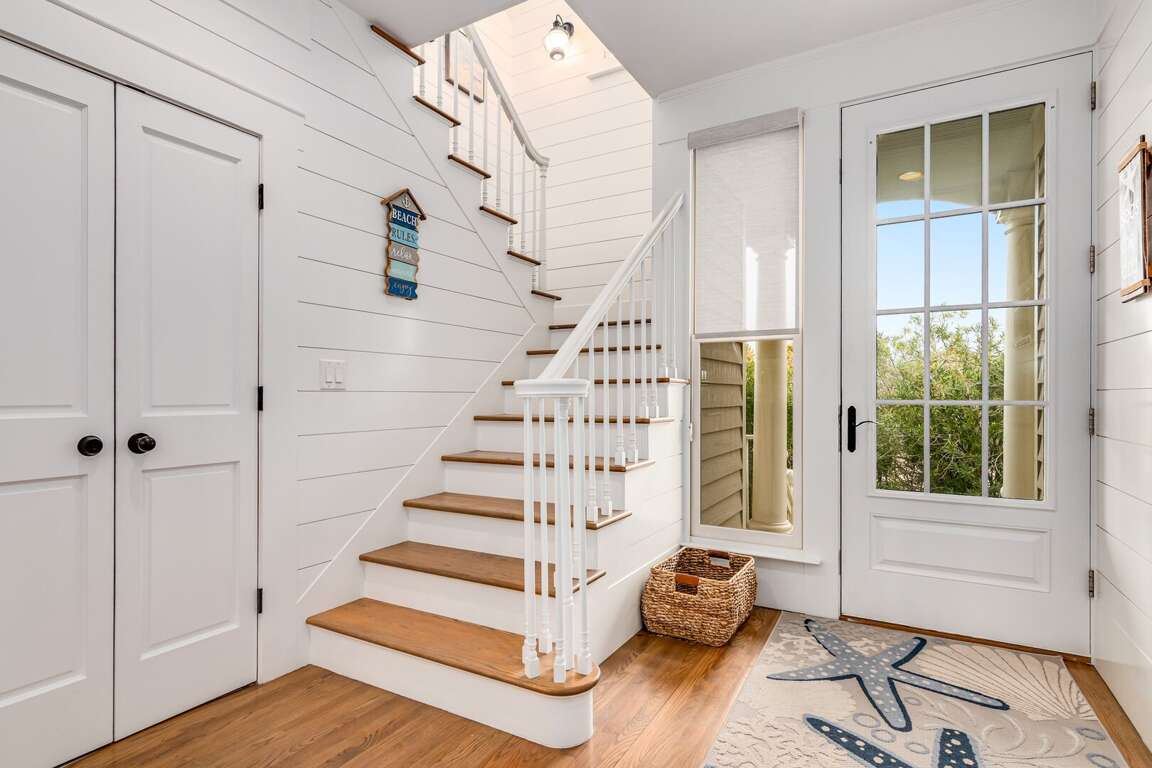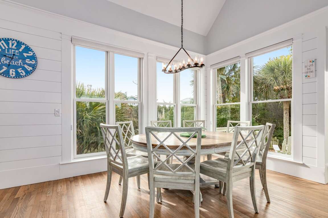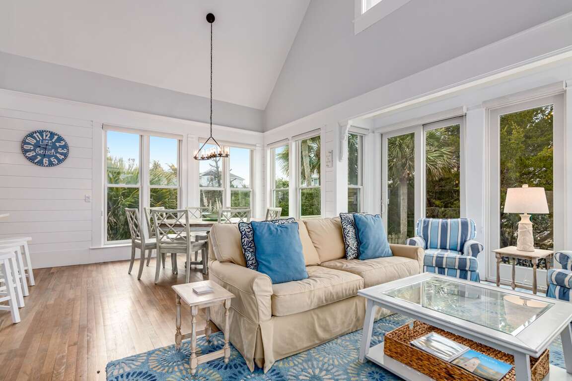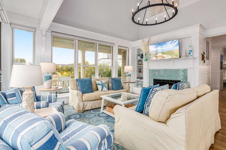 Totally renovated, this sunny family beach home offers plenty of comfy indoor and outdoor spaces-relaxation has never been made so easy! Seas the Day's bright and airy open floor plan is made for gathering family and friends. Anchored around a decorative fireplace, the generous living area welcomes you for conversation, game-playing or movie-watching. The nearby dining space, bathed in natural light, is perfect for meals or snacks and is adjacent to the completely updated kitchen-now equipped with top-of-the-line Kitchen Aid appliances, custom cabinetry, sparkling countertops, a farmhouse sink and a spacious island offering not only prep space but also seating. If al fresco dining is your preference, the recently redesigned back deck provides a new dining set and nearby gas grill-both ensconced in privacy-ensuring foliage.