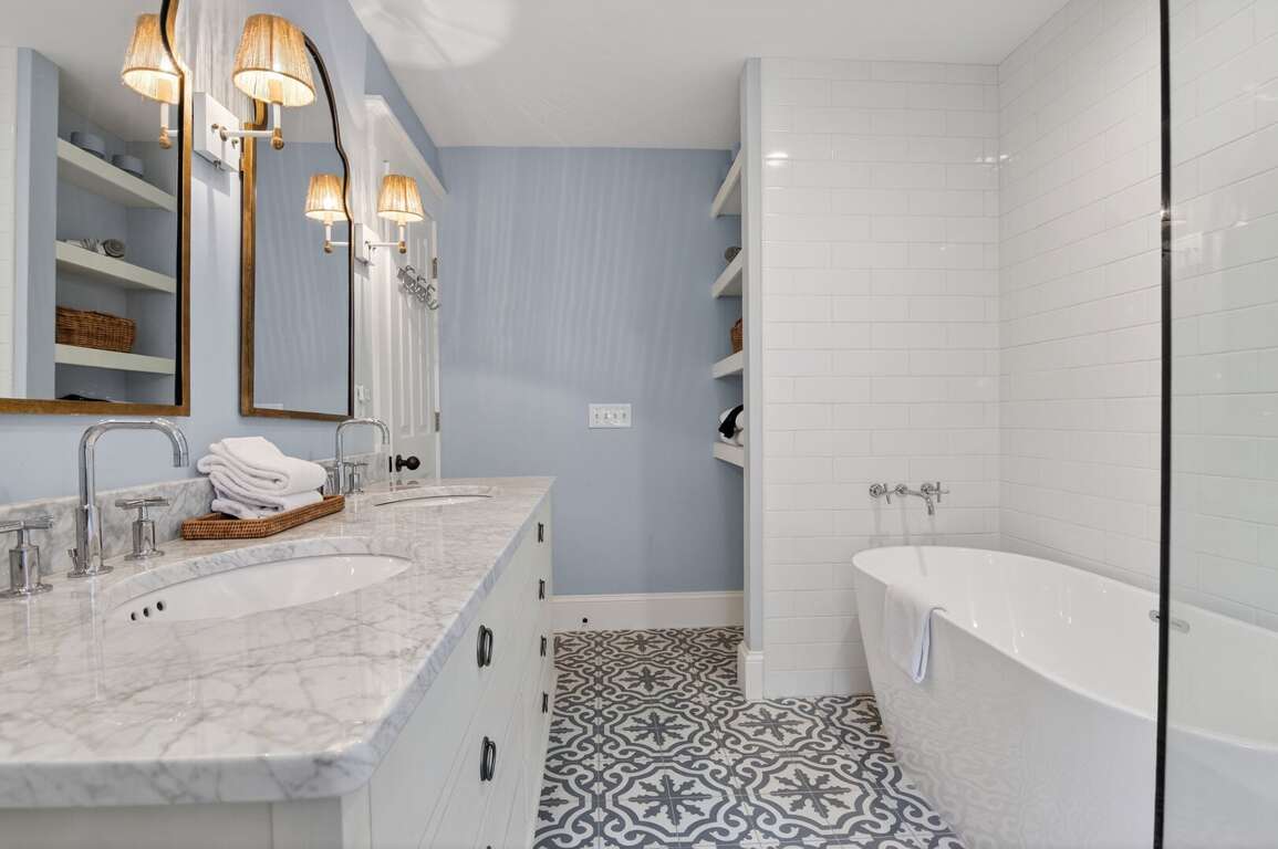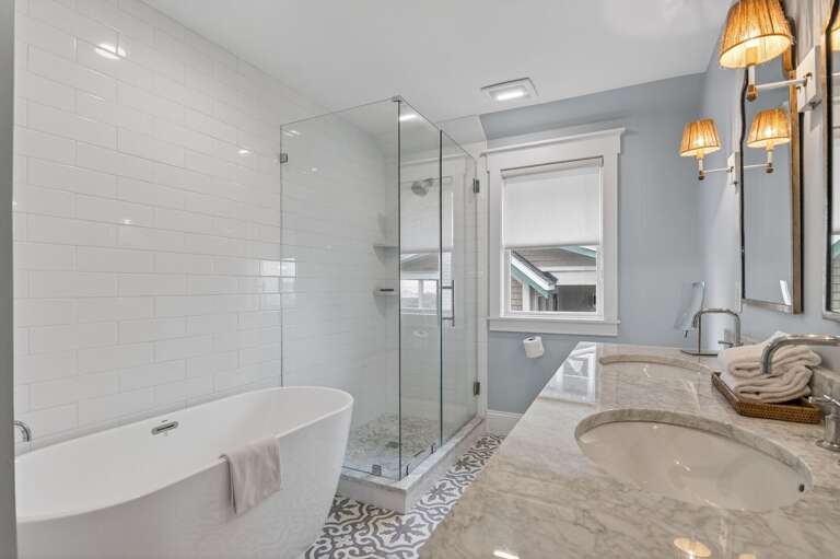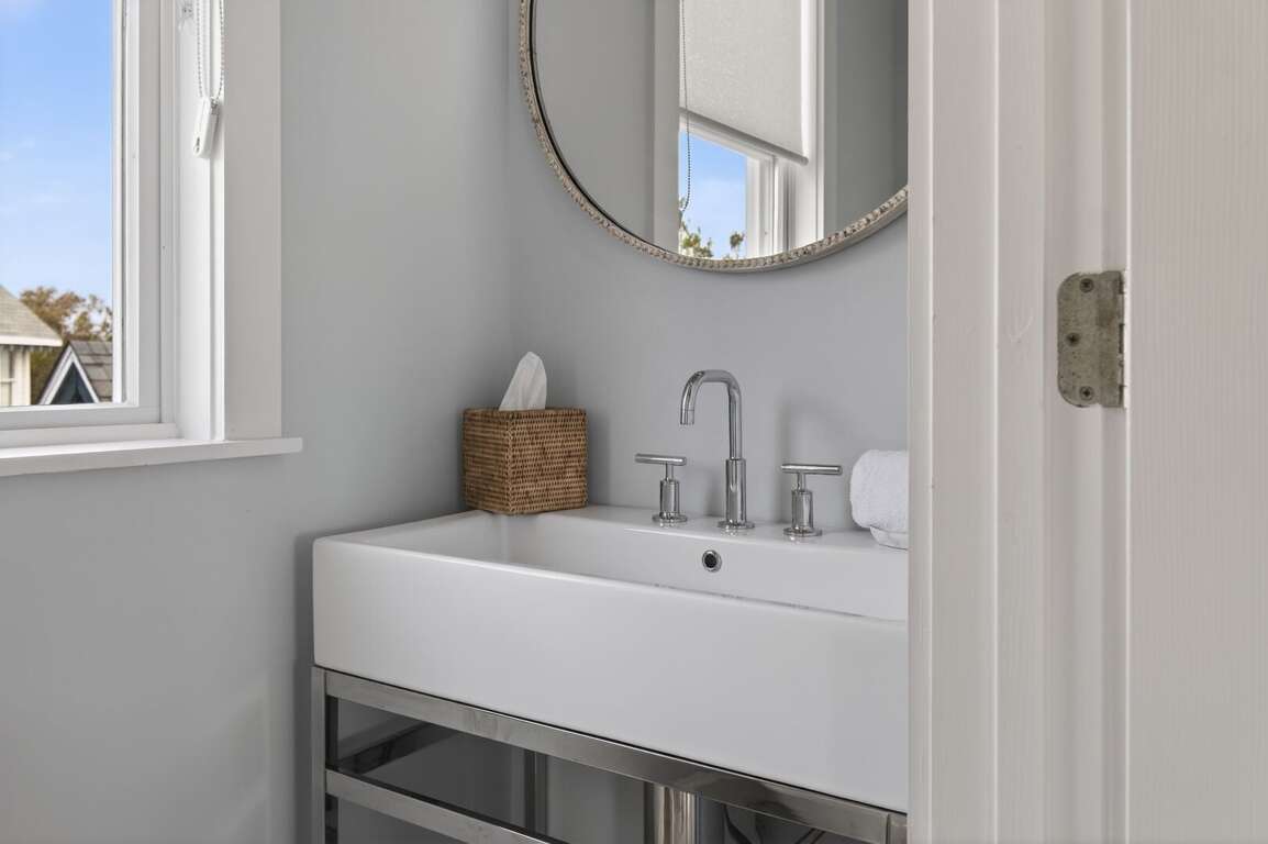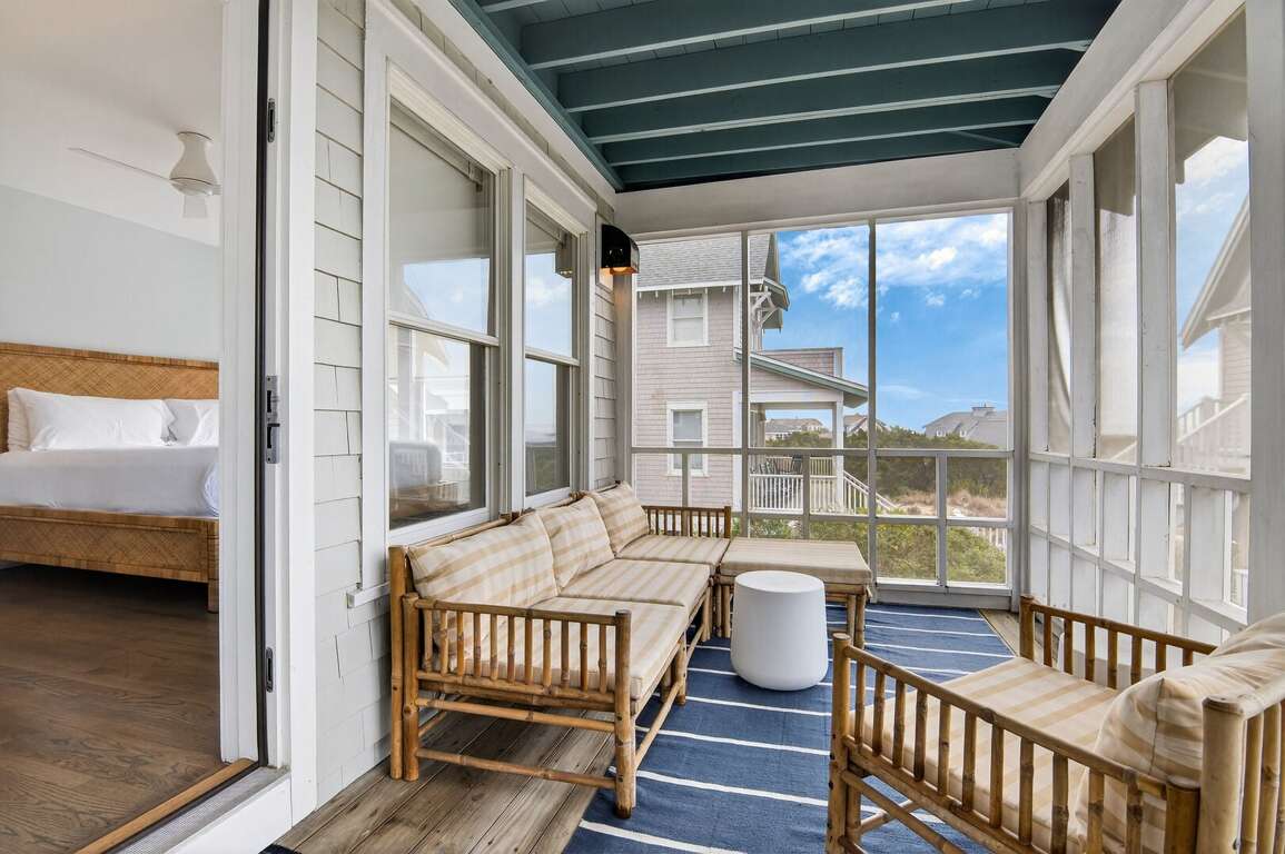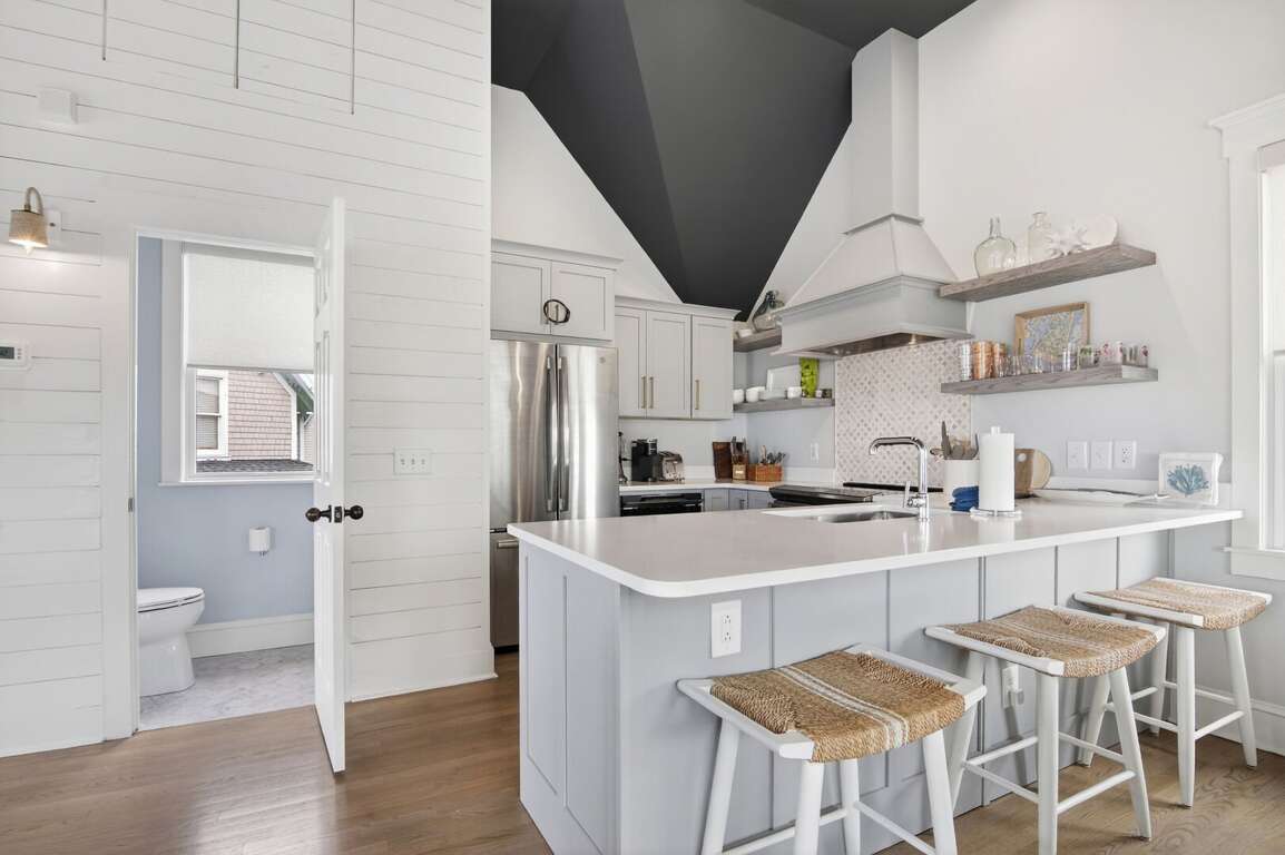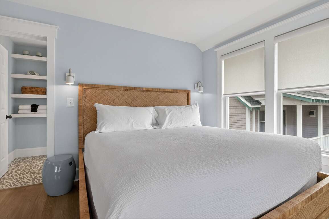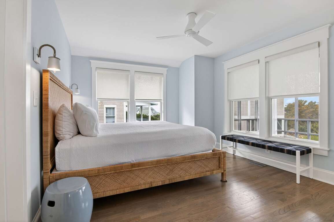 This cozy cottage features two bedrooms and 2.5 bathrooms, situated on the high dunes of Bramble Reach with stunning ocean views overlooking South Beach. On the first floor, you will find a queen guest room with a private bathroom, as well as a master suite featuring a king bed and a spacious bathroom with a separate tub and shower. You can also enjoy the island breeze from the back screened porch, accessible directly from the master bedroom.