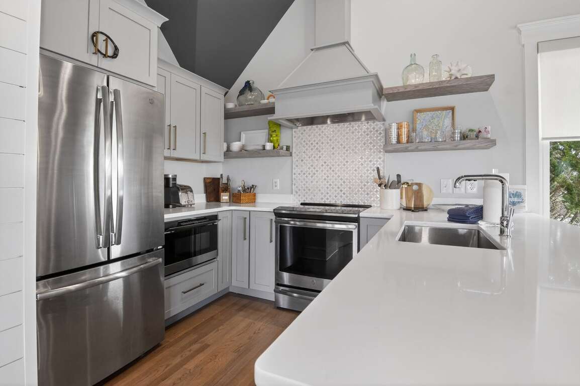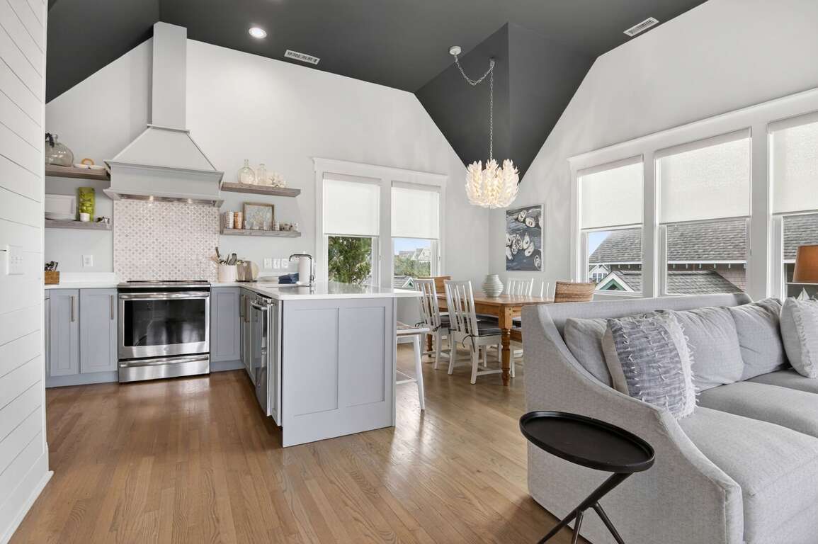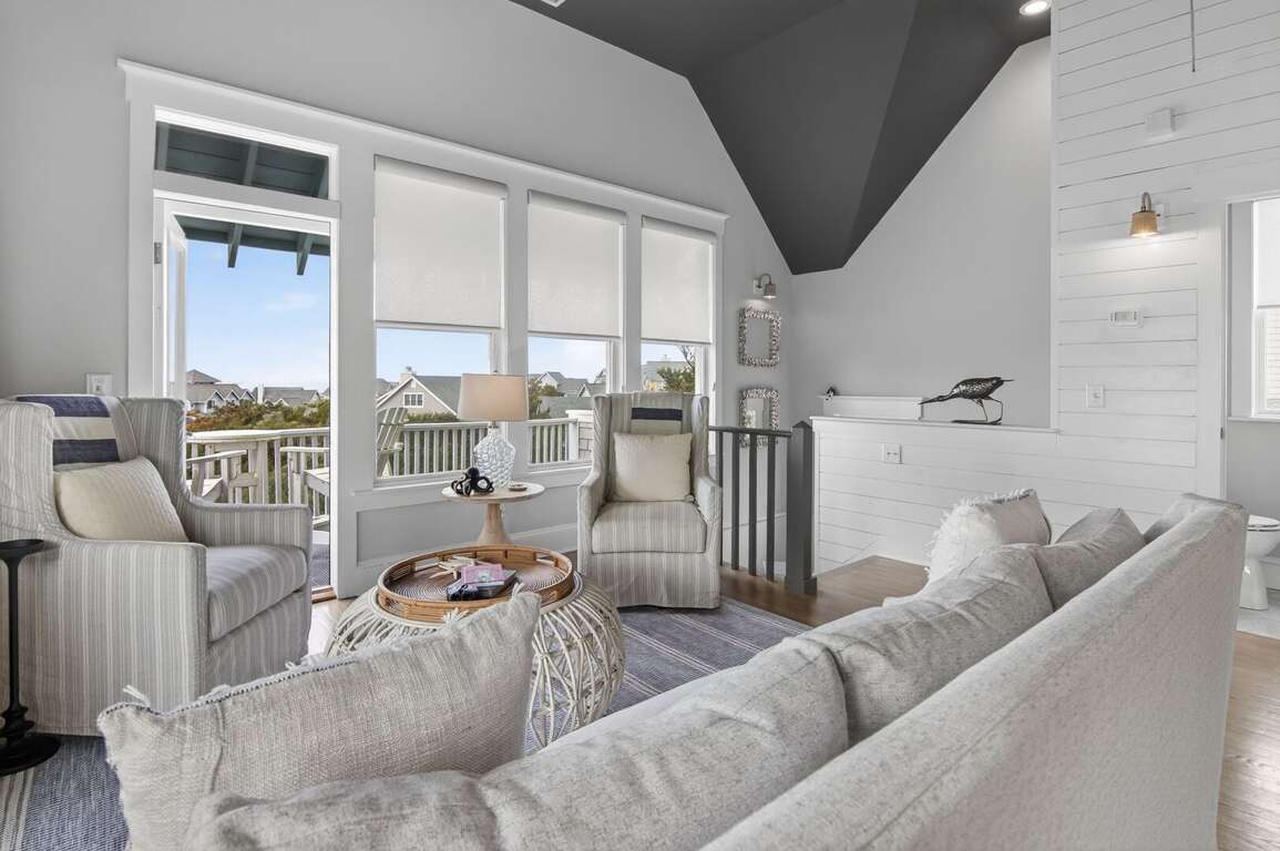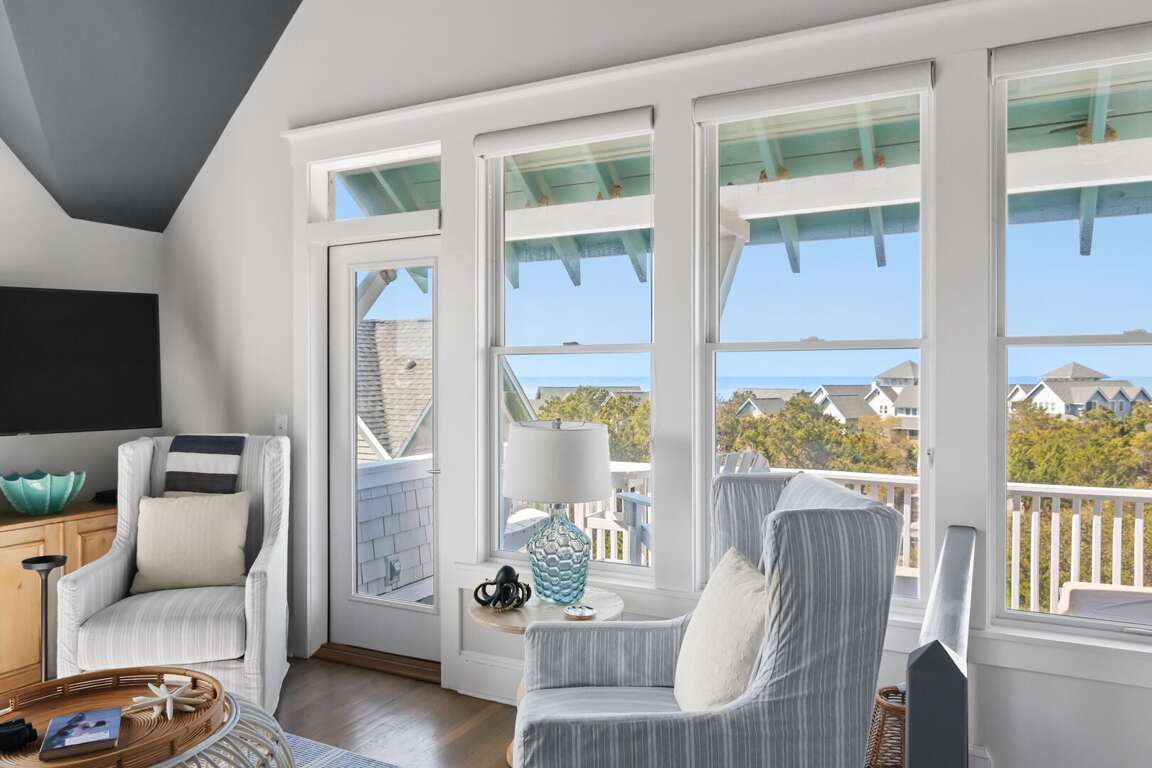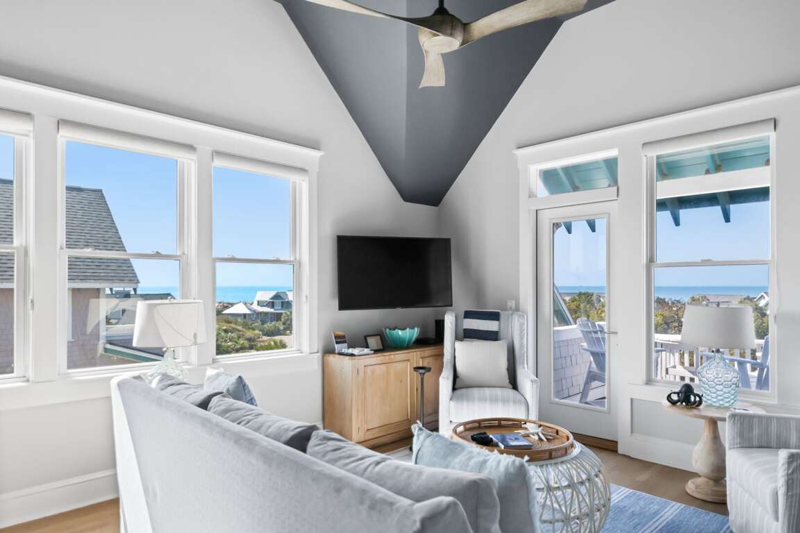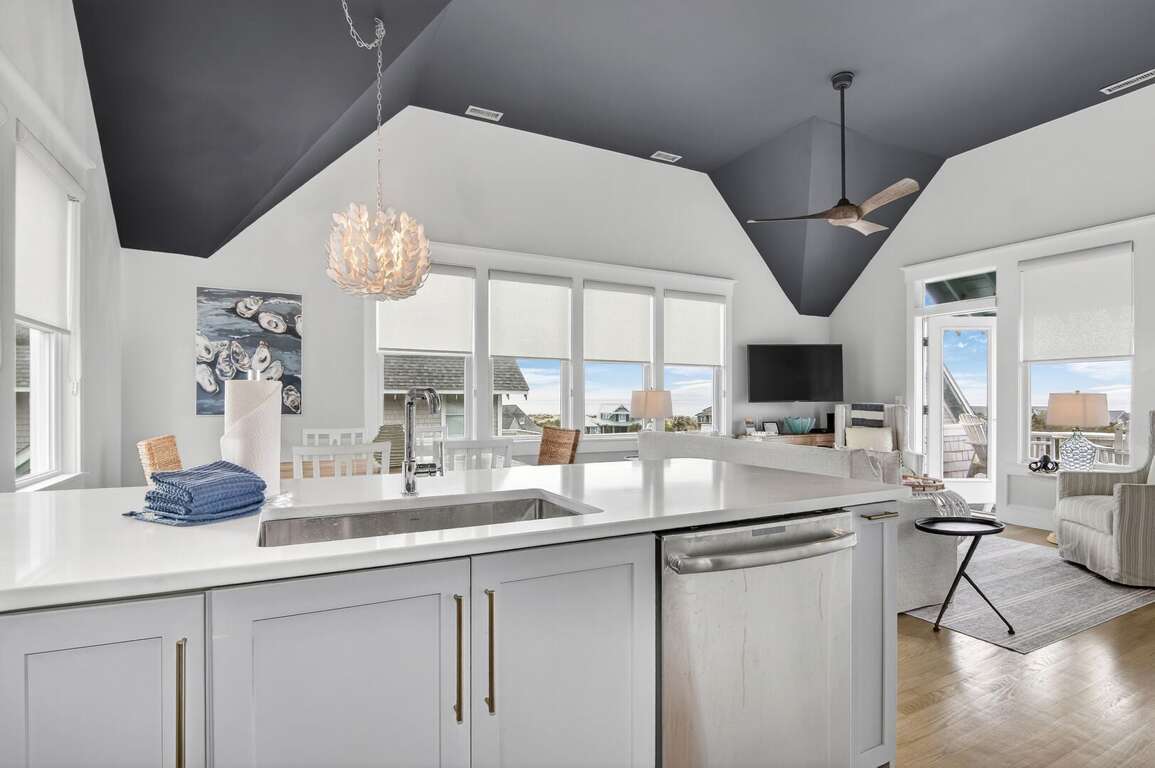 Upstairs, the home offers an open-concept living space and an open deck perfect for taking in the beautiful ocean scenery. Additionally, a six-passenger golf cart is provided for your use to explore all the island amenities.