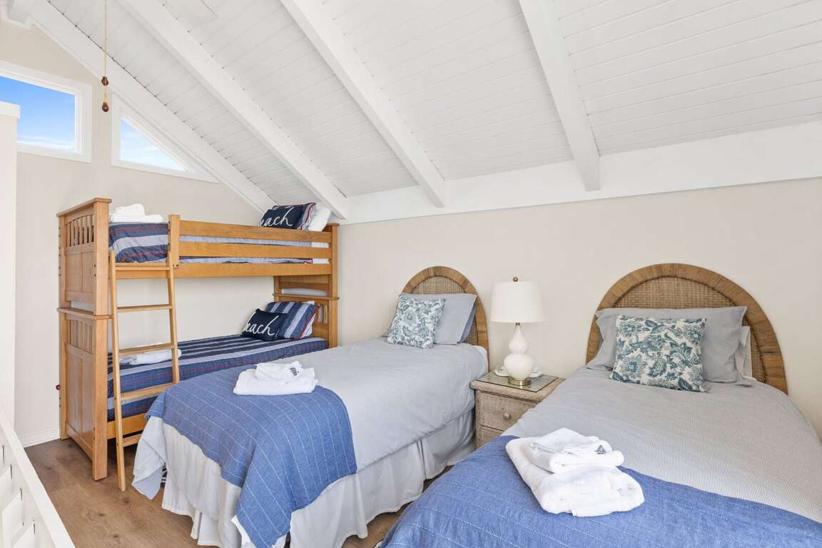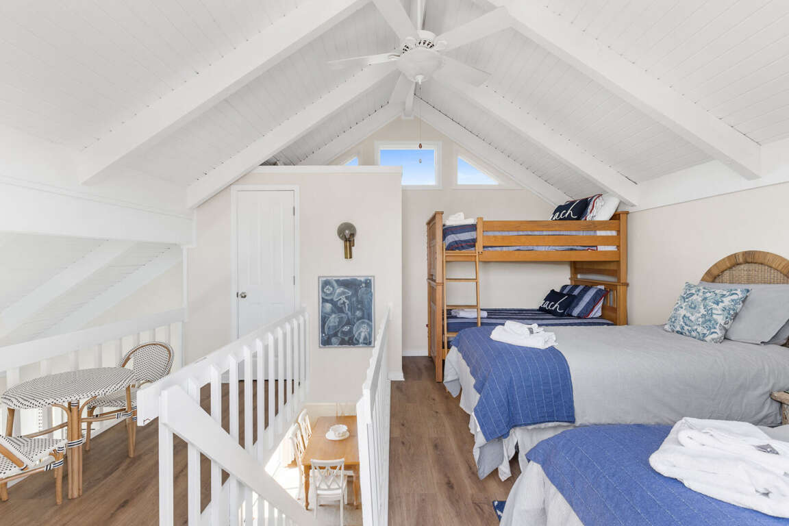 Designed for comfort and connection, this villa easily sleeps up to 8 guests and is perfect for multiple couples or families. Two spacious king suites provide privacy and relaxation—one with a private en-suite bath and the other conveniently located near a full hallway bath. Upstairs, the kids (or extra guests) will love their own space featuring two twin beds and a twin bunk setup, along with a half bath and access to a private upper deck with stunning ocean views.