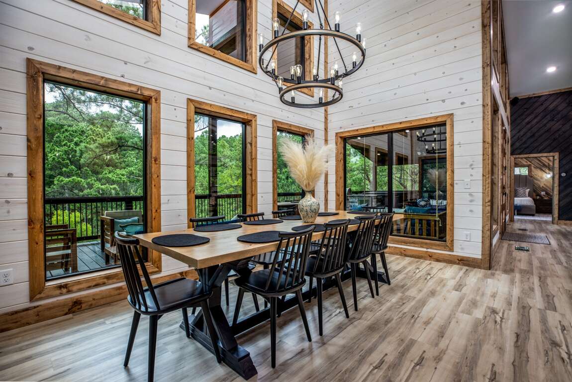 Escape to Ounce Upon A Pond, a luxurious 5 bedroom cabin rental in Broken Bow, OK. With its stunning design, extensive amenities, and breathtaking surroundings, this is the perfect destination for your next getaway.