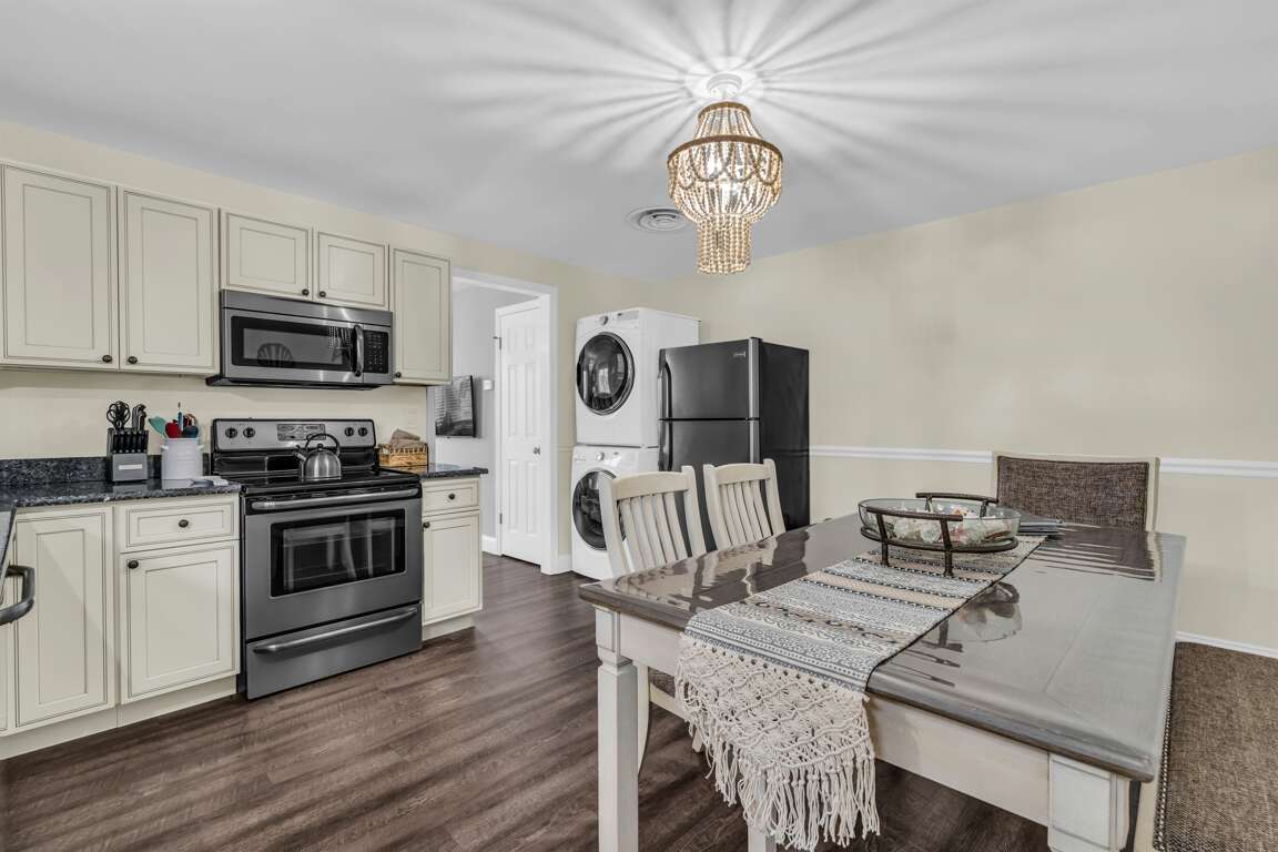 We offer a fully stocked kitchen with all your cooking tools requirements: dishes, cups, pots, tea kettle, serving platters, eating & cooking utensils, Keurig and drip style coffee machines, toaster, chopper, blender, baking items, waffle maker, etc.