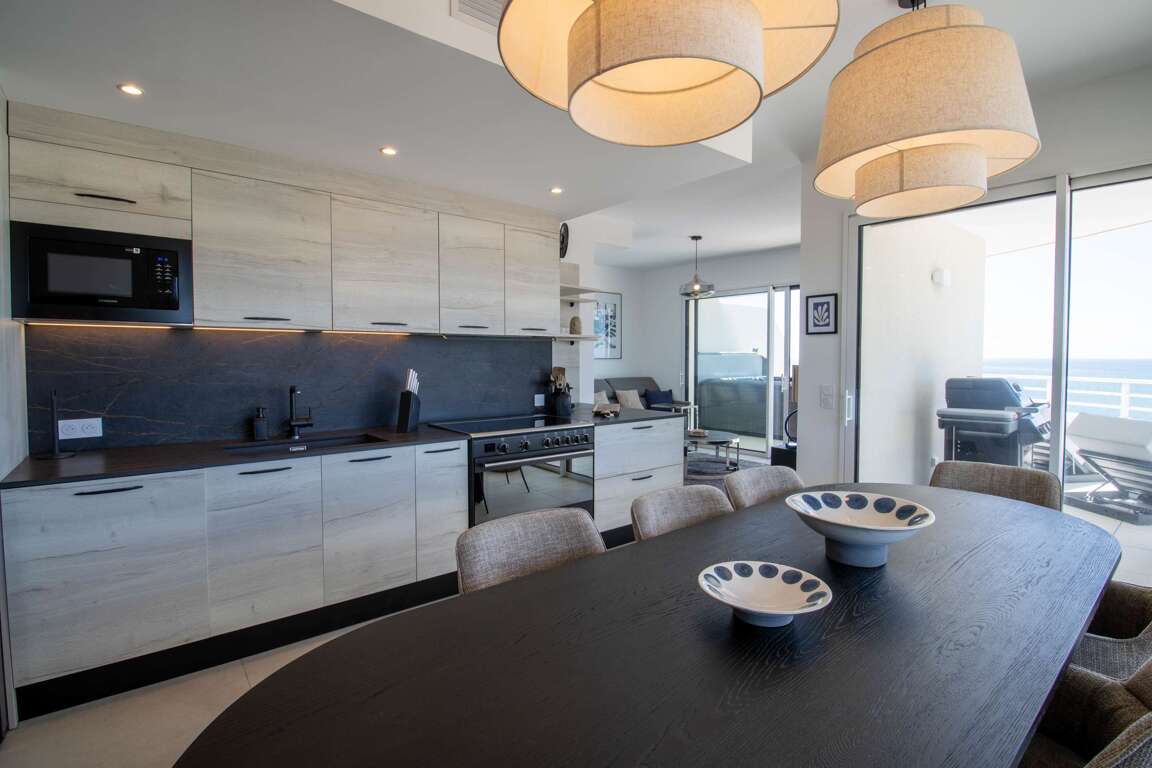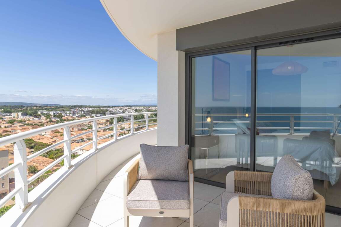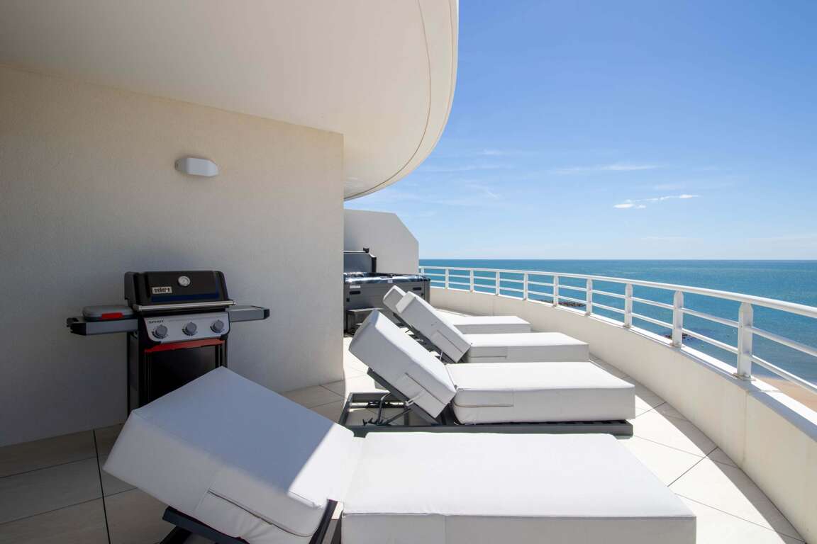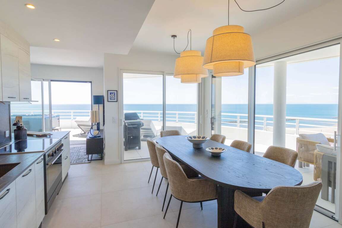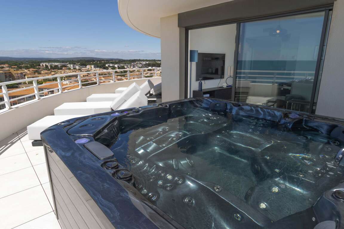 Settle into this exceptional duplex on the 9th & 10th floors of the Archipel Panarea residence. Rated 4 stars, it features a 6-person private spa, panoramic sea views, a fully equipped designer kitchen, fiber-optic Wi-Fi, and air conditioning. Private parking space. Personalized check-in only. Just 50 m from the beach, Carrefour City, and the Casino district. Area: approx. 100 m² • Sleeps: up to 9 guests Personalized check-in only (no self check-in) Archipel Panarea, on the seafront, steps from the Casino district: Beach: 50 m (pedestrian walkway) "Included: hotel-quality linens & towels (beds made on arrival), end-of-stay cleaning, premium welcome kit, 7-day Valras’Loc support, board games Our Valras’Loc team will personally welcome you at your chosen time and remain available 7 days a week to enhance your stay with local recommendations, bookings, and à-la-carte services.