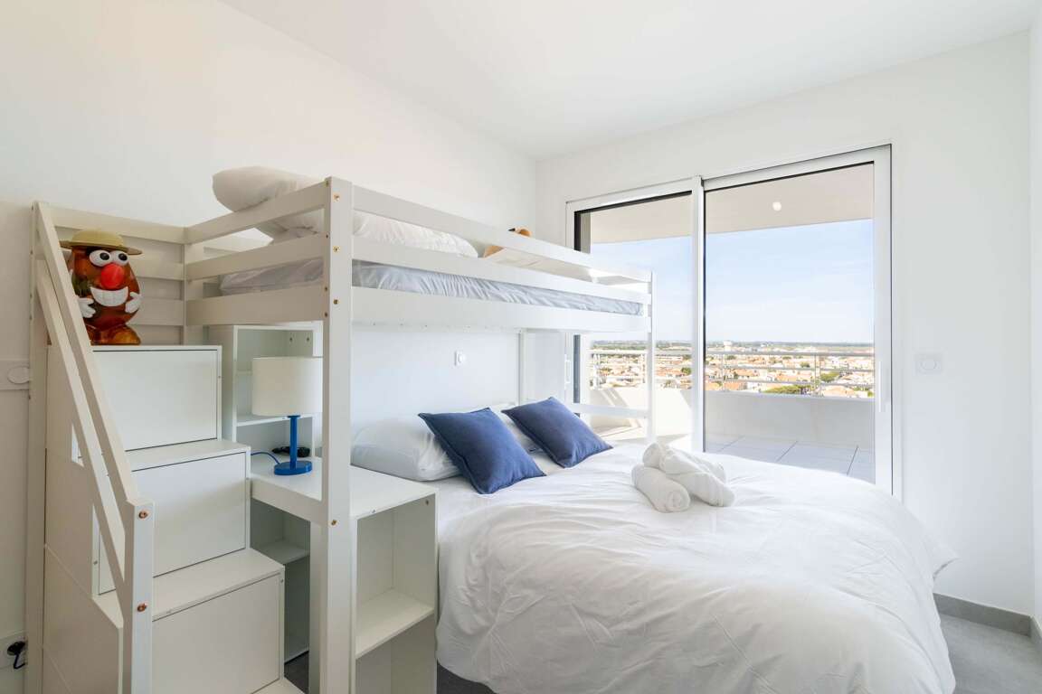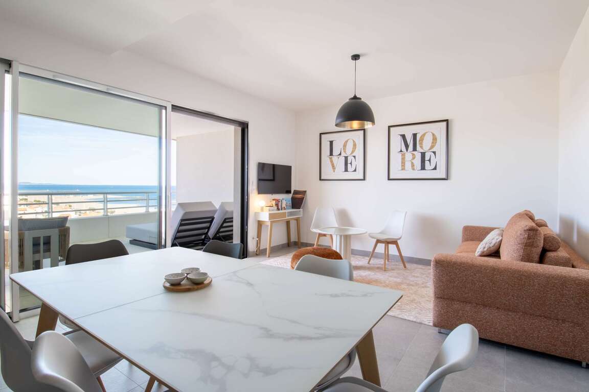 Welcome to Valras’Loc Panarea, a 3-star duplex on the top floor of the Archipel Panarea residence, just 50 m from the beach. With its large sea-view terrace, full range of amenities, private parking and Valras’Loc Sélect services, this property accommodates up to 7 guests for a bright and comfortable stay in Valras-Plage. This spacious and modern duplex consists of: • Paid public parking nearby (from 15/06 to 15/09): €35/week or €7/day " Our Valras’Loc Sélect service guarantees a warm welcome, beds made on arrival, and assistance 7 days a week. Our personalised concierge service is available to help organise your stay: transfers, bookings, local tips, equipment rental and much more.