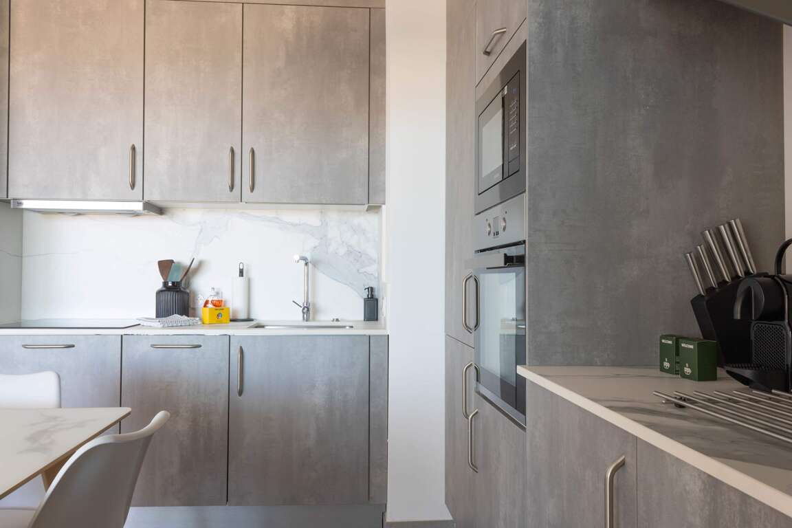 Fully equipped open-plan kitchen: