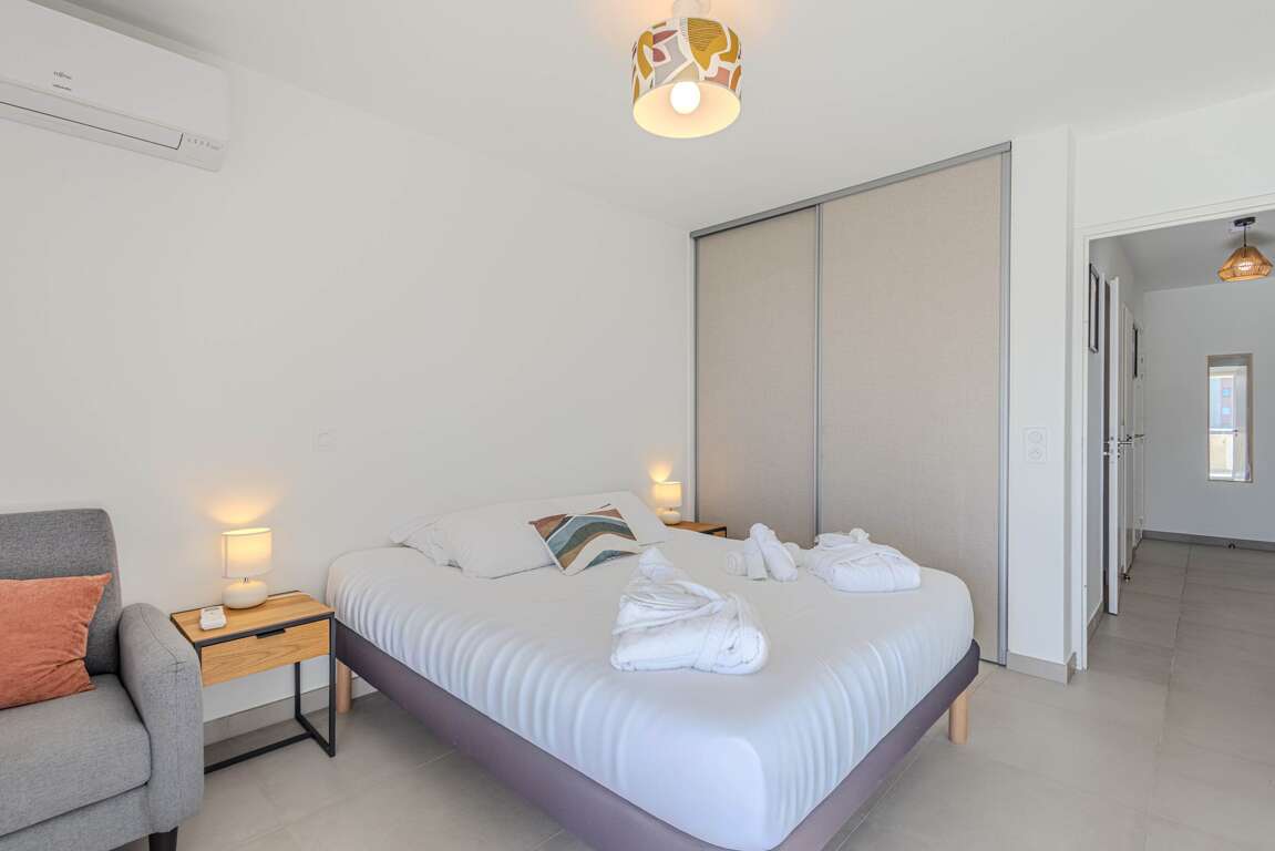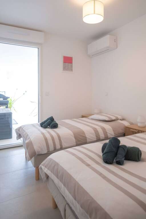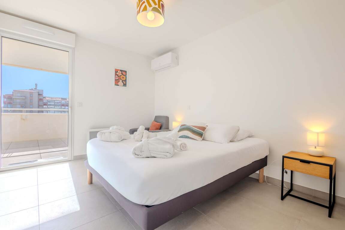 Escape to Valras-Plage and experience the ultimate beachfront getaway at Archipel Panarea Horizon Bleu! This stylish apartment offers stunning views and direct beach access, perfect for families and groups. Enjoy modern amenities, including a fully-equipped kitchen, air conditioning, and a comfortable living area. Explore nearby attractions, from charming shops to exciting water sports, or simply relax on the sandy shores. With its prime location and welcoming atmosphere, this apartment is your ideal home base for an unforgettable vacation in the South of France. Step inside Archipel Panarea Horizon Bleu and discover a thoughtfully designed space perfect for your beachfront getaway. The apartment features two comfortable bedrooms. The first bedroom offers a cozy retreat with a single bed, ideal for a child or individual guest. The second bedroom provides a more spacious experience with a queen-sized bed. The living room is a versatile area, including a sofa bed for extra sleeping space. Enjoy the convenience of a fully equipped kitchen, ready for preparing delicious meals. A full bathroom provides all the necessary amenities. The apartment boasts a prime location with direct beach access, allowing you to easily enjoy the sun, sand, and sea. Other amenities include air conditioning, ensuring a comfortable stay, and a dining table for enjoying meals together. The apartment is designed to provide a relaxing and enjoyable vacation experience. Guests will have exclusive access to the entire apartment, including the two bedrooms, fully equipped kitchen, full bathroom, and comfortable living area. Enjoy direct access to the beach and take advantage of the building's elevator. The apartment also features air conditioning for your comfort. Nestled in the heart of Valras-Plage, Archipel Panarea Horizon Bleu boasts an enviable location with everything you need within easy reach. Step outside and you're just moments from the golden sands and sparkling waters, perfect for a refreshing swim or a leisurely stroll. The neighborhood is brimming with charming cafes and restaurants, offering a taste of authentic French cuisine. You'll find a delightful array of dining options, from casual beachfront bistros to more refined establishments, all within a short walk. Explore the local shops and boutiques for unique souvenirs or everyday essentials. For those seeking entertainment, the vibrant town center is just a stone's throw away, offering a lively atmosphere and various activities. Whether you're craving relaxation, adventure, or culinary delights, this neighborhood has something for everyone, making your stay at Archipel Panarea Horizon Bleu truly unforgettable. Getting around Archipel Panarea Horizon Bleu is easy! Public transportation options are readily available in Valras-Plage, allowing you to explore the surrounding areas. While specific bus routes and schedules are subject to change, the local bus network provides convenient access to nearby towns and attractions. For those arriving by car, the apartment offers garage parking. This provides secure and convenient parking throughout your stay. The apartment's location is approximately a 15-minute drive from Béziers Cap d'Agde Airport (BZR). This makes it easily accessible for travelers. From the apartment, you can also easily reach the main transit hubs and explore the region. Enjoy your travels! "Please note the following details for your stay at Archipel Panarea Horizon Bleu. Check-in is available from 4:00 PM to 10:30 PM. Check-out time is 11:00 AM. Please be aware that there is garage parking available for your convenience. The apartment is located on the second floor and is accessible via an elevator. We kindly request that you respect our no-smoking policy. Pets are not allowed. We also welcome events, please inquire for further details. We hope you enjoy your stay! I am dedicated to ensuring you have a fantastic stay at Archipel Panarea Horizon Bleu! I am generally available to assist with any questions or needs you may have throughout your visit. The best way to reach me is via the platform messaging system, where I aim to respond within a few hours. For urgent matters, please don't hesitate to send a message, and I will do my best to address them promptly. I am also available during reasonable hours for any assistance you may need, ensuring your vacation in Valras-Plage is as enjoyable as possible.
