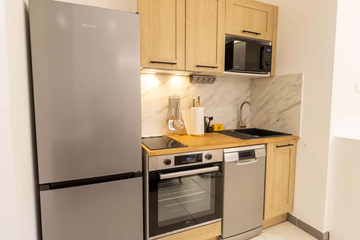 • Equipped kitchen: hob, fridge, microwave, coffee maker, toaster, dishes