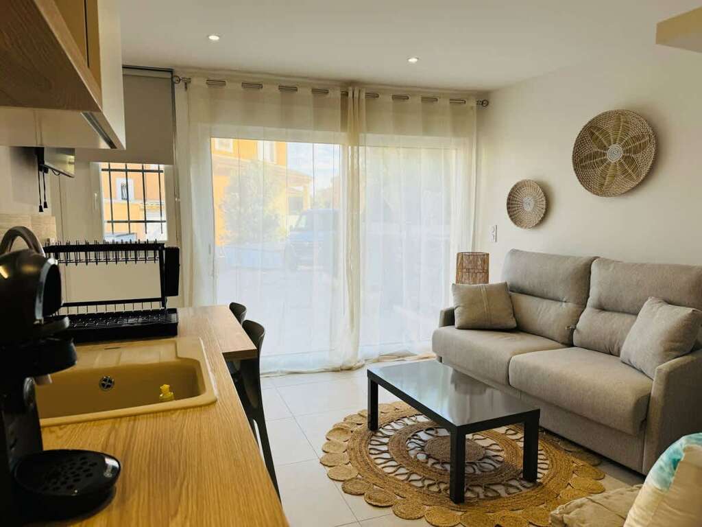 Studio place to stay in Valras-Plage with a private garden, A/C, Wi-Fi, and parking; renovated layout sleeps 4 guests near shops, port, and beach.