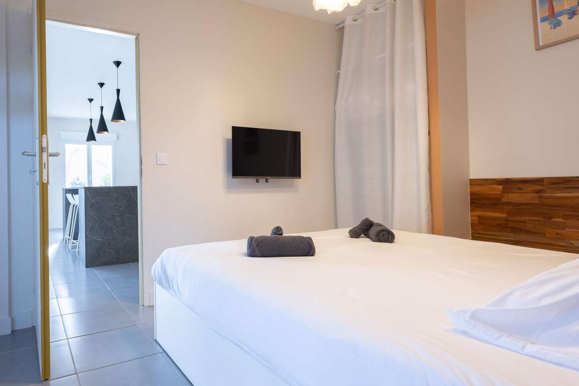 Enjoy an unforgettable stay in this large renovated villa with adjoining studio, located just 10 minutes’ walk from the beach of Valras-Plage. Accommodating up to 14 guests, it offers every modern comfort: private pool, outdoor bar, pétanque court, multiple kitchens and living areas – perfect for holidays with family or friends. The property consists of a main house and an adjoining studio, laid out as follows: Guests have full and exclusive access to the entire property: villa, studio, terrace, pool and outdoor areas. The villa is located in a quiet residential area of Valras-Plage, while remaining close to everything you need: • Valras beach: 10 min on foot "• Towels and bed linen provided – beds made on arrival The villa has been managed by Valras’Loc since June 2024. We provide professional service and 7-day-a-week assistance throughout your stay, for a completely worry-free experience.
