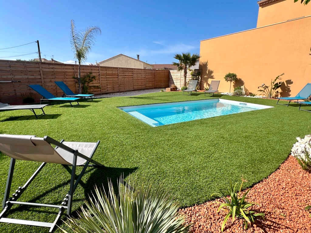 Renovated house in Valras-Plage with an adjoining studio, sleeps 14 guests, and includes a private pool, outdoor bar, and pétanque court near the beach.