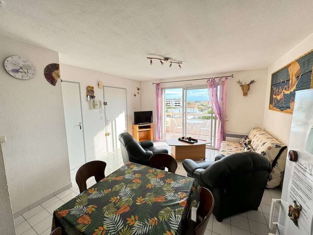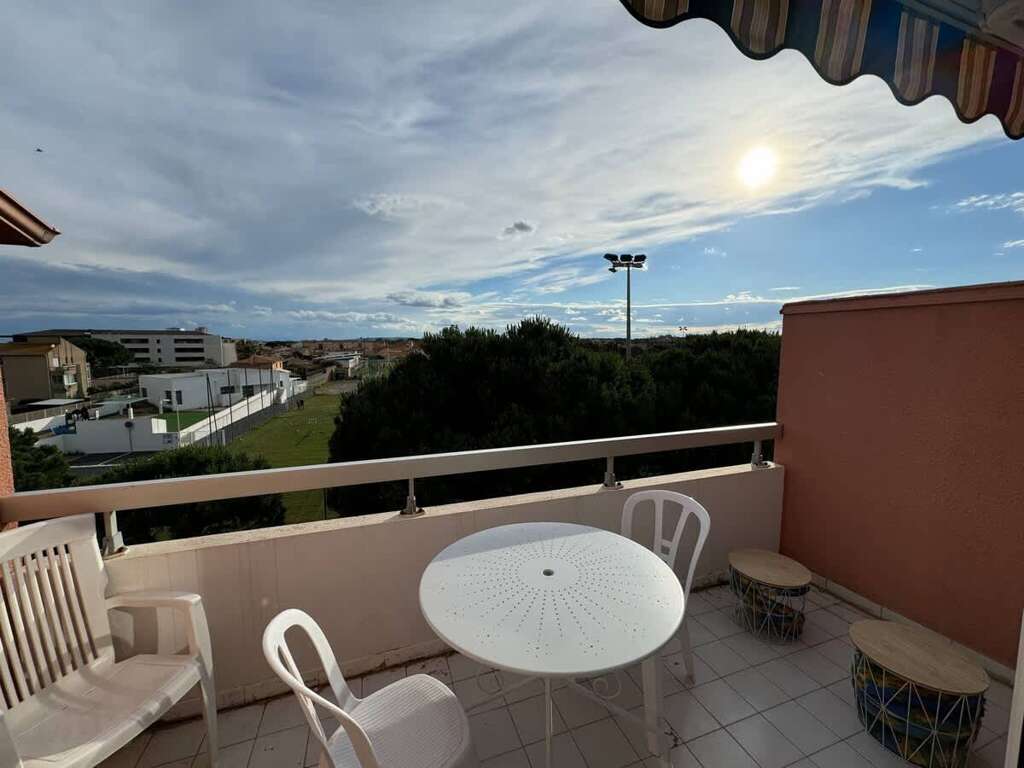 Comfortable apartment place to stay in Valras-Plage with two bedrooms, balcony stadium view, and gated parking, 300 m to the beach and harbor.