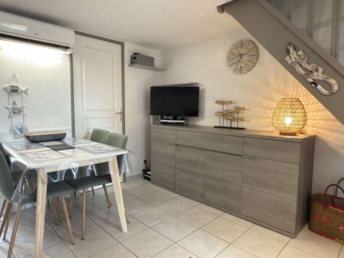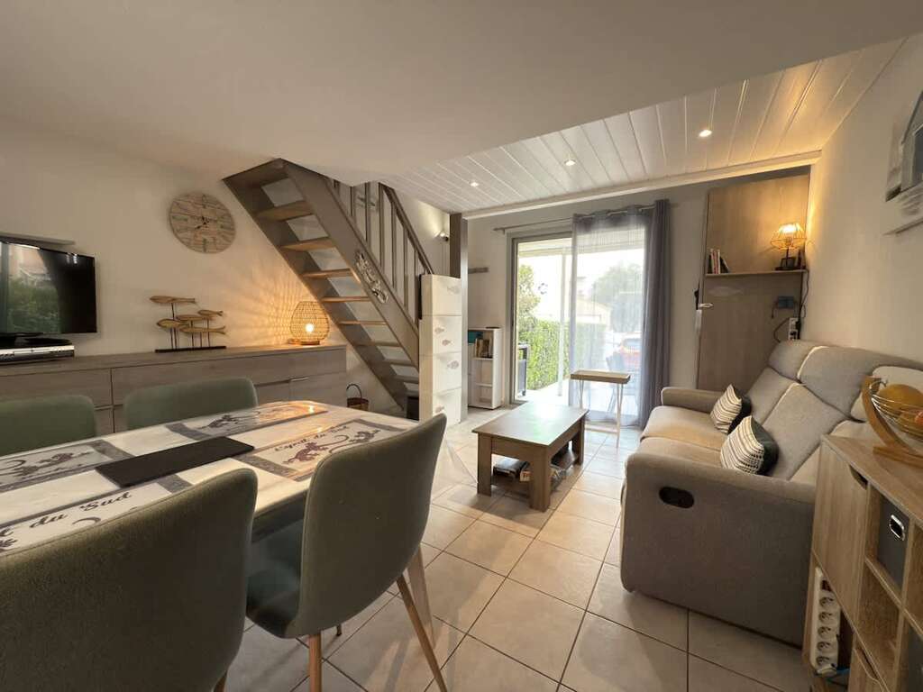 Charming 40 m² house in Valras-Plage, perfect for 5 guests. With 2 bedrooms, a private garden, air conditioning, Wi-Fi, and access to a shared swimming pool, it’s the ideal place for a relaxing holiday by the Mediterranean. Parking included. 2 bedrooms (1 double bed + 1 with bunk beds and single bed) Guests have access to the entire house, private garden, and the residence’s shared swimming pool. Private parking space included. Located in a quiet residence of Valras-Plage, just a few minutes from sandy beaches, shops, and restaurants. Ideal for families looking for both relaxation and seaside activities. Beach: 800 m · Town center: 1 km · Béziers train station: 20 min drive · Airport Béziers-Cap d’Agde: 25 min drive "Wi-Fi, heating. The Valras’Loc team is available 7/7 to assist you before, during, and after your stay. Personalized welcome on arrival and local tips included.