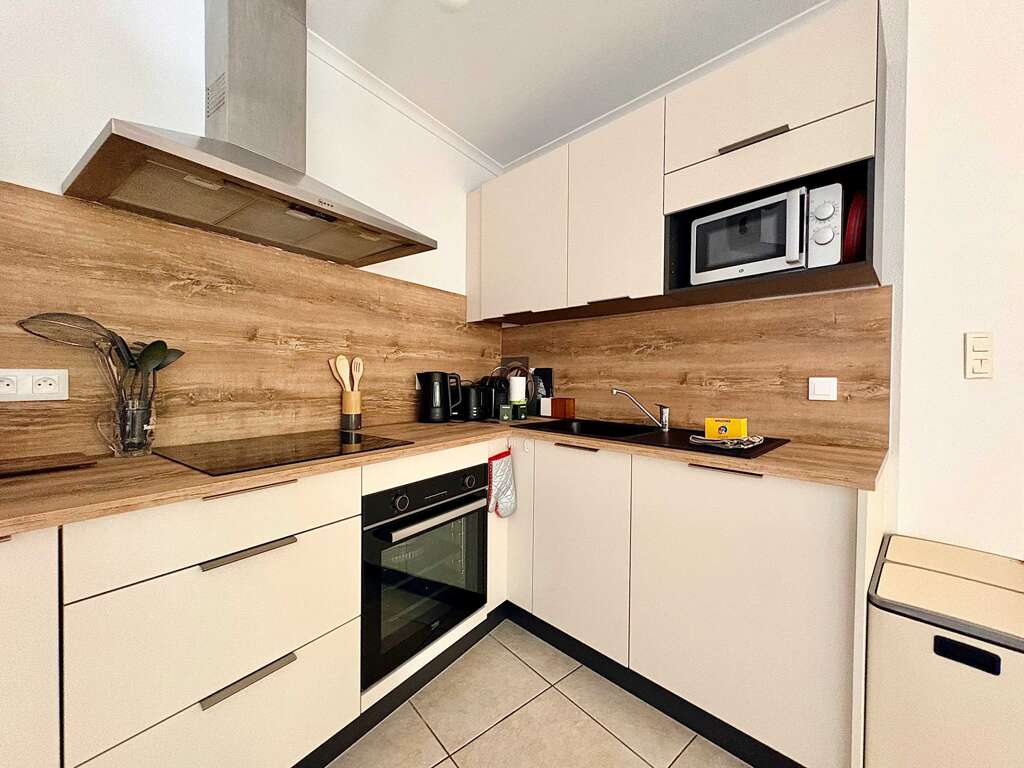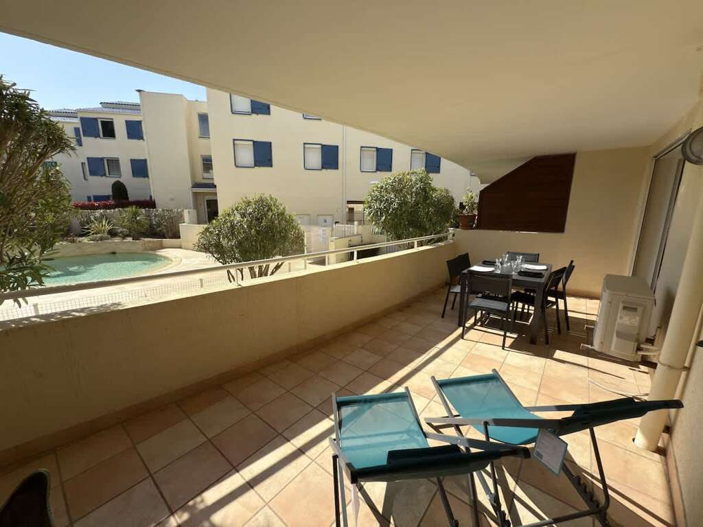 Stay in Valras-Plage in a charming 3-star rated ground-floor apartment with a private terrace, pool view and private parking space. Ideal for a couple or a small family, 800 m from the beach and 5 minutes’ walk from the town centre. This carefully furnished apartment offers: Guests have full access to the apartment, the private terrace, the shared pool and a covered parking space in the building. Self check-in possible on request. Located in a quiet residential area of Valras-Plage, the Le Grand Bleu residence is close to the town centre while remaining peaceful. Plage : 800 m "Valras’Loc services included: Our Valras’Loc team is available 7 days a week before, during and after your stay. A welcome guide will be provided with our top tips to make the most of Valras-Plage and the surrounding area.