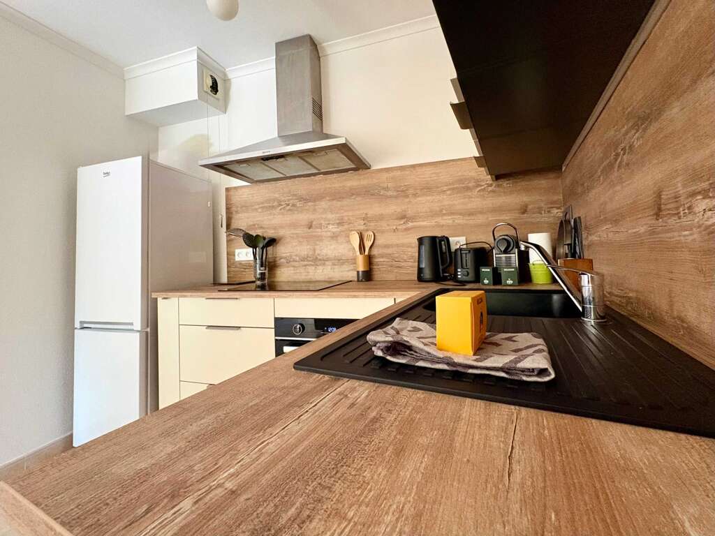 Fully equipped open-plan kitchen: