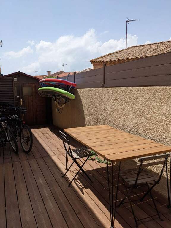 Welcome to Valras’Loc! This duplex house, located in the sought-after Mouettes district in Valras-Plage, offers full air conditioning, two terraces including one with sea view, and all the comfort you need just 1 minute’s walk from the beach. An ideal setting for holidays with family or friends. 90 m² house on two levels, accommodating up to 6 guests: • Full access to the entire house and both terraces The house is located in the Mouettes district, known for its peaceful atmosphere and immediate proximity to the beach: • Valras town centre: 10 minutes by bike "• Bed linen provided – beds made on arrival Our Valras’Loc team is available 7 days a week to assist you before, during and after your stay. We make sure you enjoy a smooth, warm and stress-free experience.