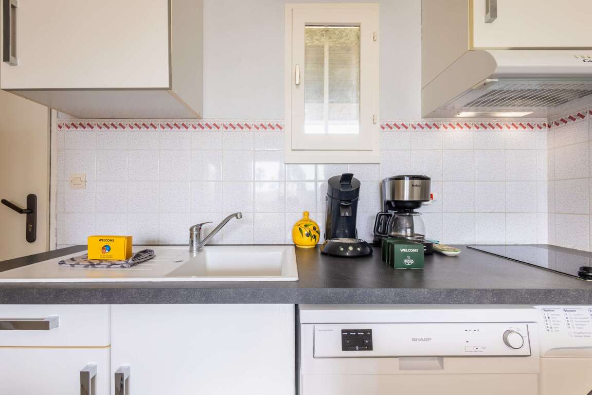 • Equipped kitchen with dining area: fridge, microwave, hob, coffee maker, crockery and utensils