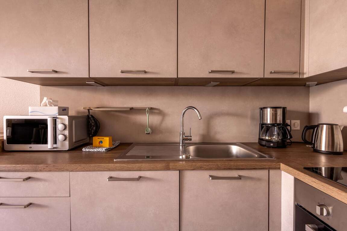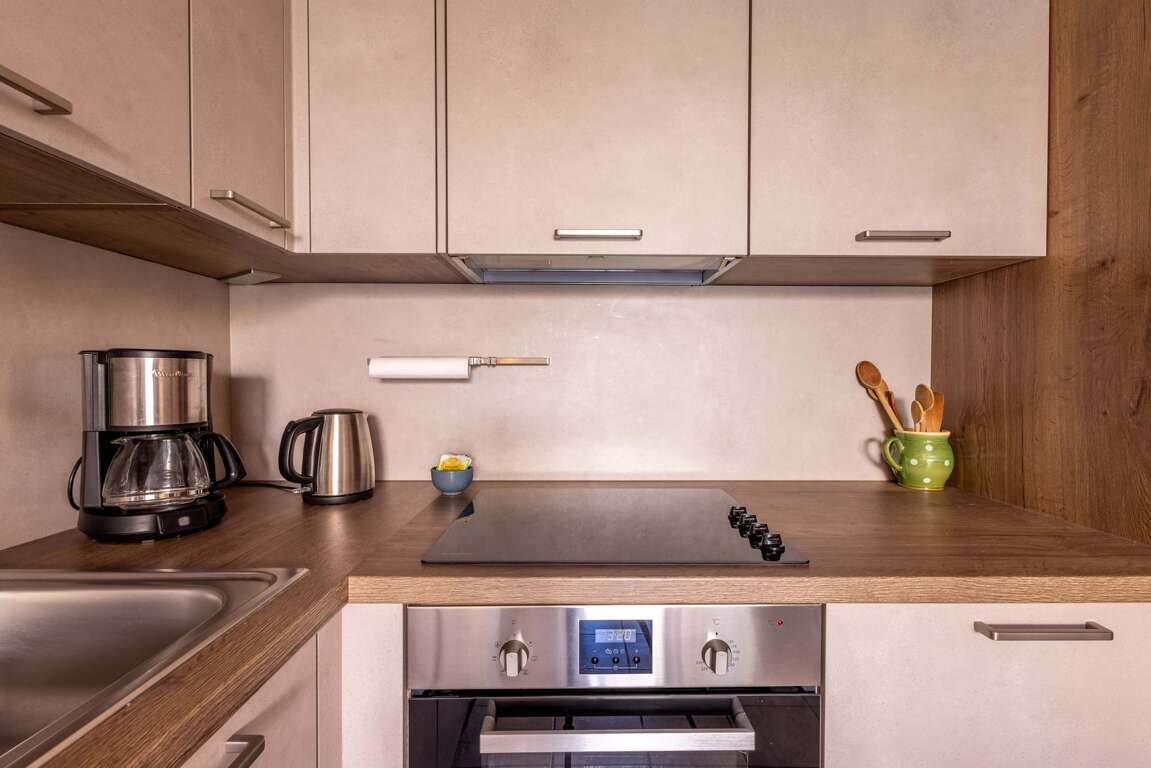 • Open-plan equipped kitchen: fridge, freezer, hob, microwave, oven, coffee maker, kettle, toaster, dishes and utensils