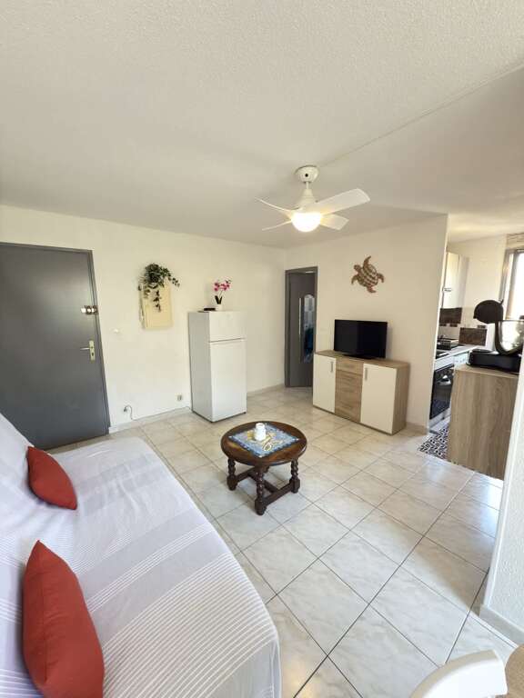 30 m² apartment vacation rental in Valras-Plage, ideal for 4 guests, 100 m from the beach, with secure private parking and a fully equipped kitchen.