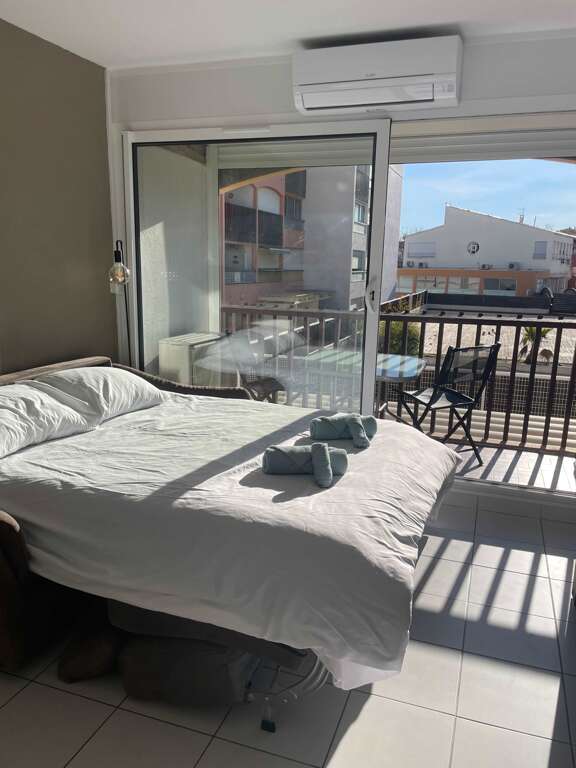 Studio place to stay in Cap d’Agde, Agde for two, with A/C, WiFi, and an equipped kitchen; walk to the harbour, beaches, shops, and night markets.