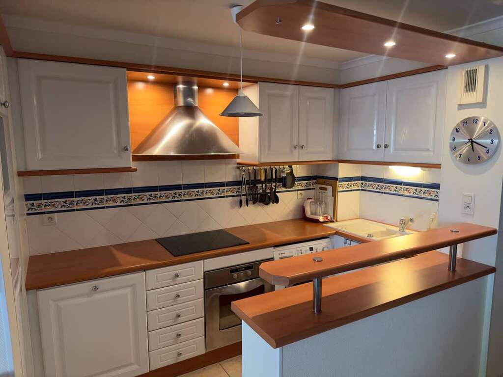 • Equipped kitchen: fridge freezer, oven, microwave, coffee maker, kettle, toaster, dishes and cookware