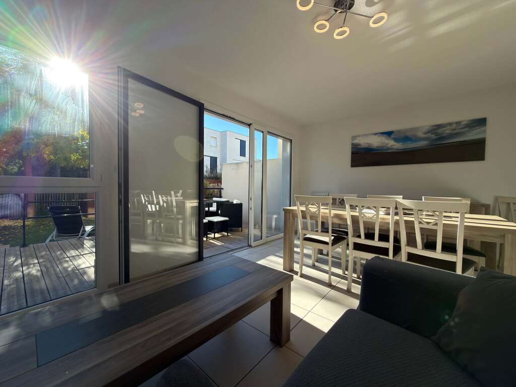 Modern house vacation rental in Sérignan near Valras-Plage, sleeps 6 plus a baby, with enclosed garden, furnished terrace, AC, Wi-Fi, and parking.