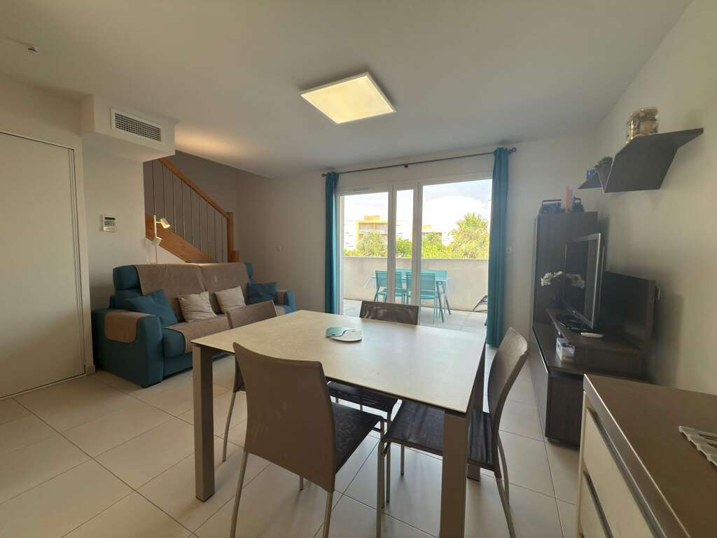 Enjoy a modern 65 m² duplex on the 1st floor of the secure Villa Bianca residence in Valras-Plage. With two private terraces (12 m² and 7 m²), air conditioning, Wi-Fi and 2 private parking spaces, this apartment is ideal for a comfortable holiday with family or friends, just a short walk from all the resort’s amenities and activities. • Capacity: 6 guests • 1st floor (residence with no lift specified) Located in the residential Villa Bianca area, between the Casino and the Les Mouettes / Élysées district, this apartment enjoys a prime location in Valras. All everyday shops are within walking distance, as well as quick access to the beach and local activities. Nearby activities: "Other things to note Arrival times: