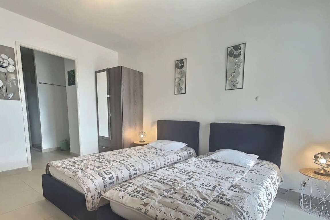 Welcome to this recent, air-conditioned 60 m² apartment located in a secure residence in Sérignan. Perfect for 5 to 6 guests, it features two bedrooms, a large terrace, private parking and is pet friendly. An ideal base to explore the region while enjoying a comfortable setting. The apartment includes: Guests have access to the entire apartment. Located in Sérignan, in a quiet residence close to shops and restaurants, and just a few minutes’ drive from Valras beach. • Valras beach: around 10 minutes by car "• Air conditioning Our Valras’Loc team is available 7 days a week to assist you before, during and after your stay. We make sure you enjoy maximum comfort and peace of mind.