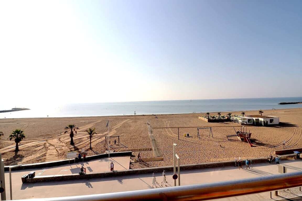 160 m² apartment in Valras-Plage, FR, a sea-facing vacation rental for up to 6 guests, with 3 bedrooms, terrace views, lift access, and Wi-Fi.