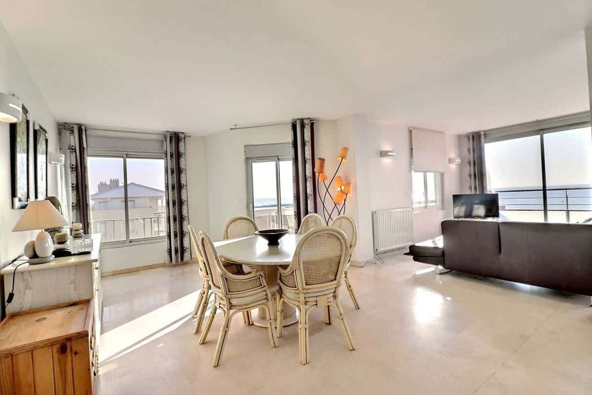 Enjoy a fantastic holiday in this high-standard, 3-star rated apartment, ideally located facing the sea and just a stone’s throw from the town centre of Valras-Plage. With its 160 m², it can accommodate up to 6 guests. The terrace with panoramic sea view promises an unforgettable stay. • Spacious 160 m² apartment Guests have access to the entire apartment, located in a residence with lift. The apartment is located directly facing the sea, just a few steps from the town centre, in a lively and pleasant area. Convenience store, pharmacy and tobacconist are all within walking distance. Sérignan shopping area is 4 km away, and Polygone Béziers is about 20 minutes by car. • Activities: bike rental, jet ski, pétanque, karting, treetop adventure park, canoeing "• Heating The Valras’Loc team is available 7 days a week to assist you during your stay. Personalised welcome on arrival and on-site assistance if needed.