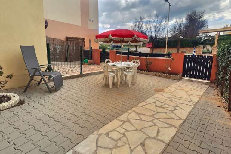 Ground-floor apartment rental in Valras-Plage with terrace and private parking, 50 m from the beach near shops and the town center, a practical place to stay.