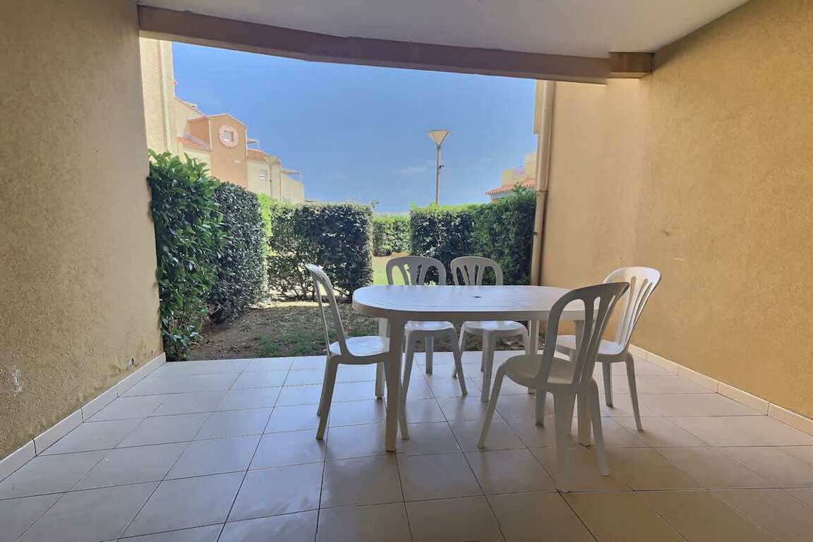Ground-floor apartment vacation rental in Valras-Plage with 2 bedrooms, terrace, Wi-Fi, and AC in bedrooms, set 50 m from the sea and town.