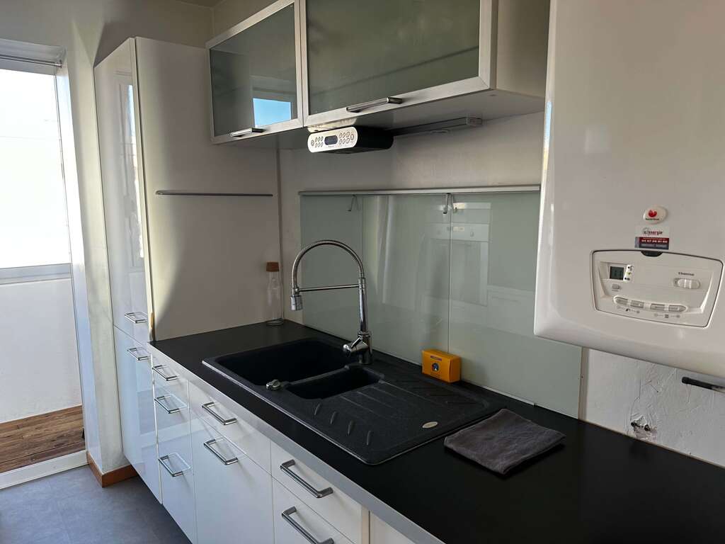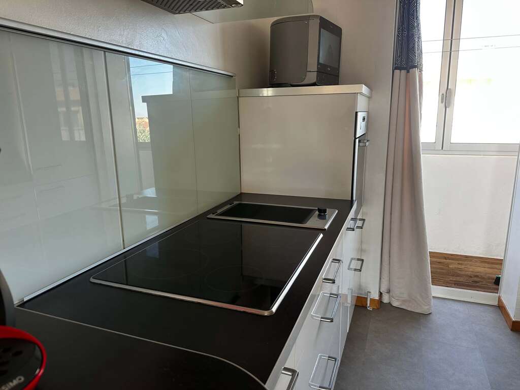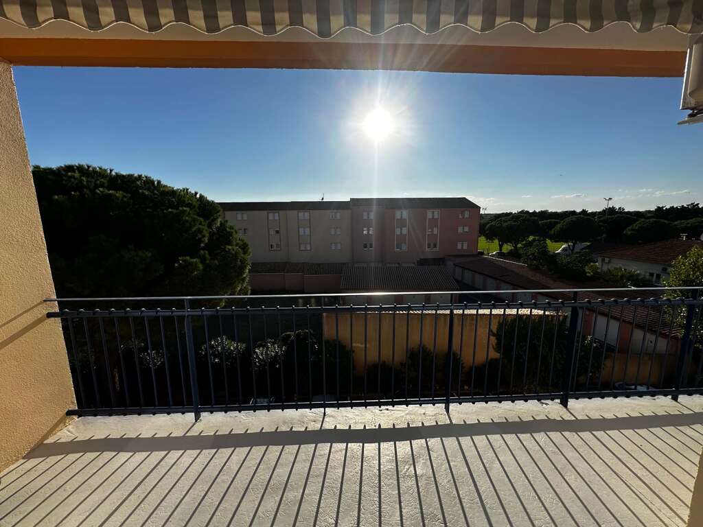 Apartment vacation rental in Valras-Plage with 2 bedrooms, full kitchen, and private balcony, plus free parking and a 6-minute walk to the beach.