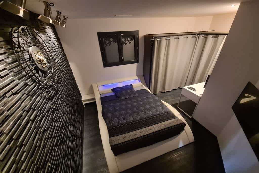 1 bedroom with a 140 cm double bed, walk-in closet and TV