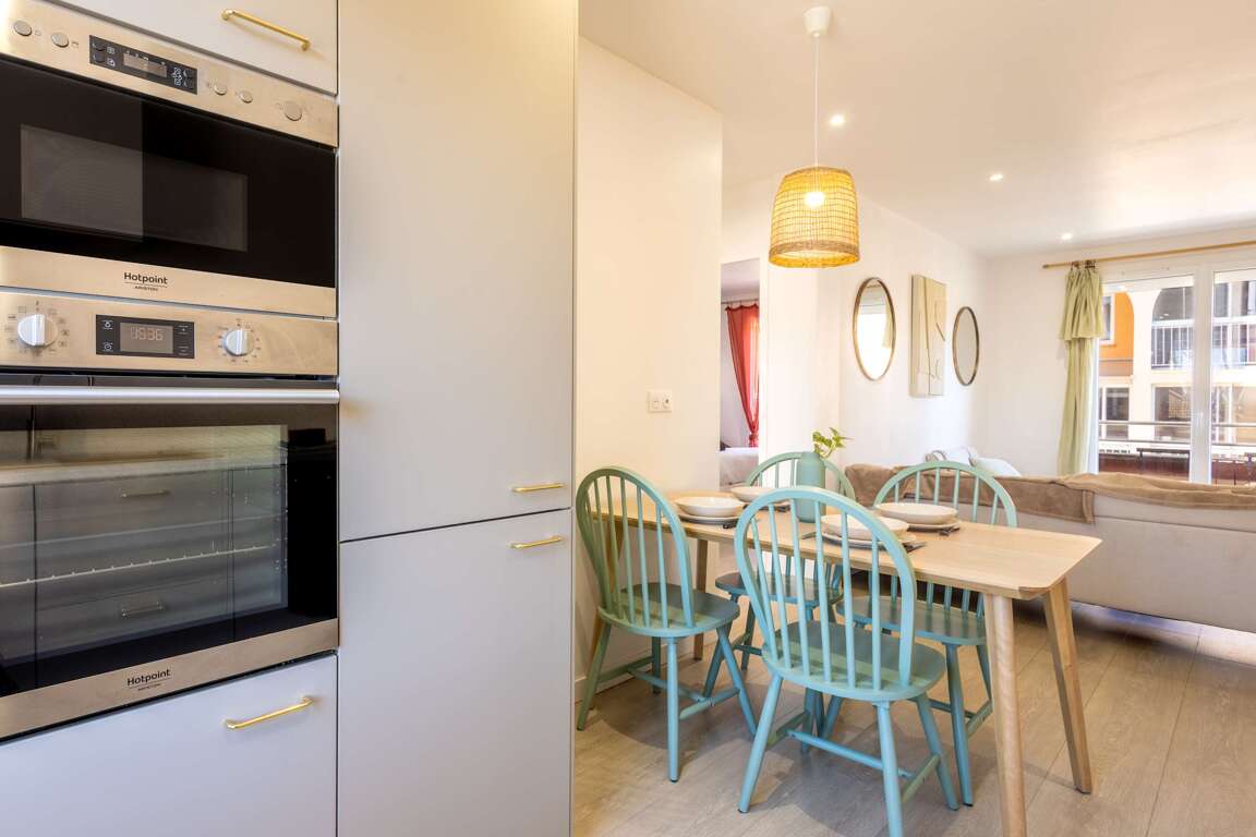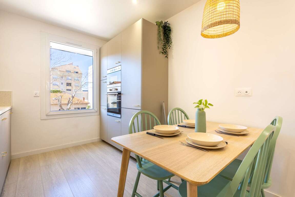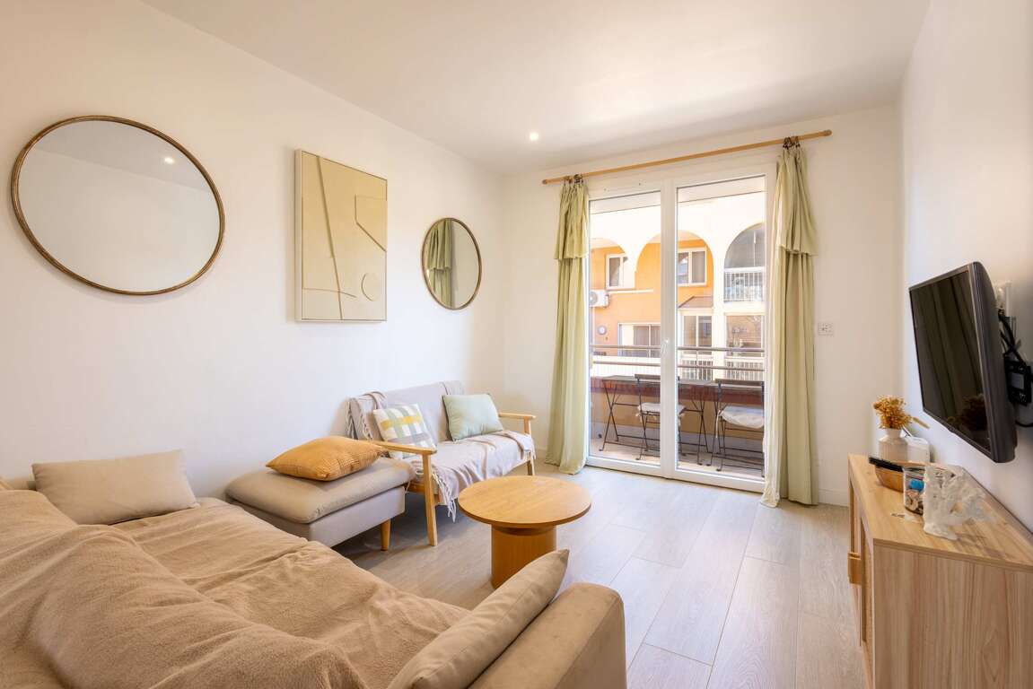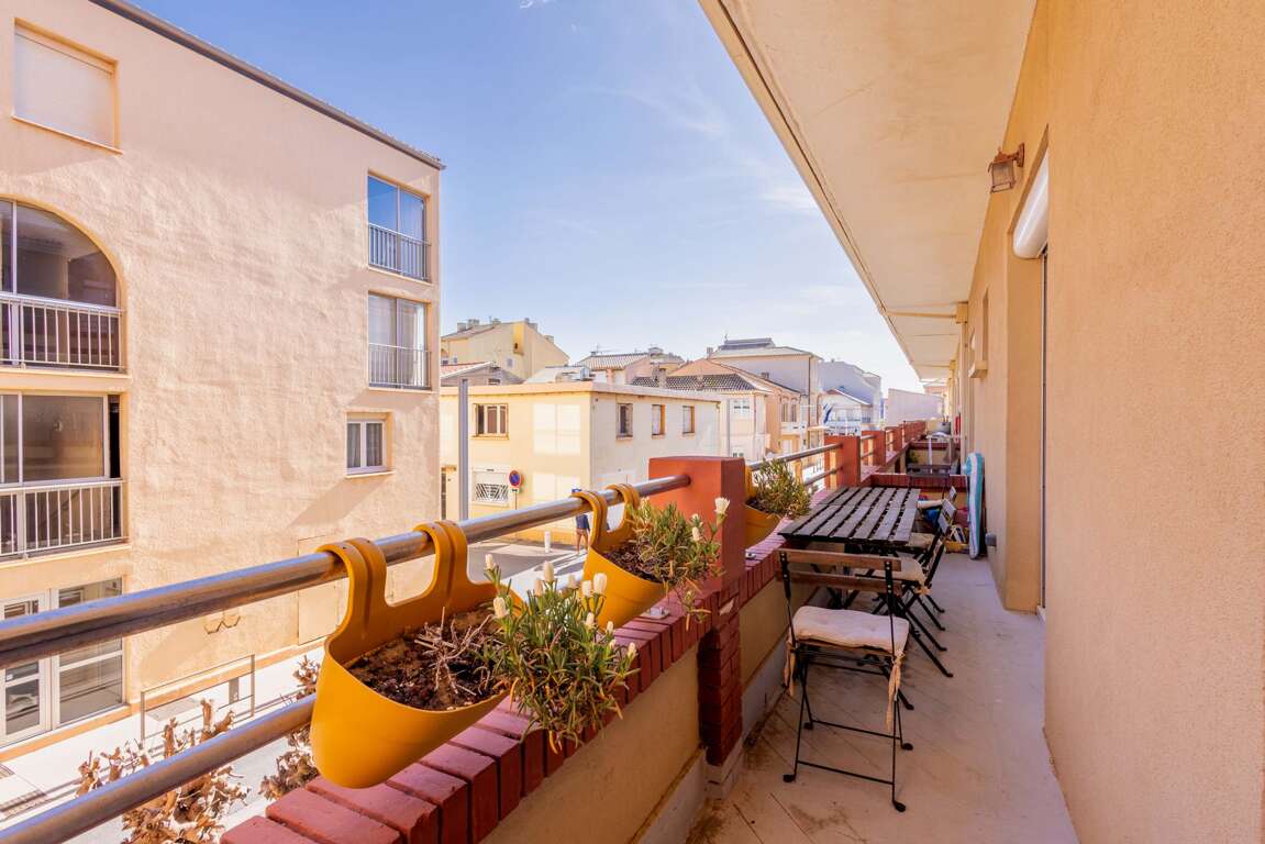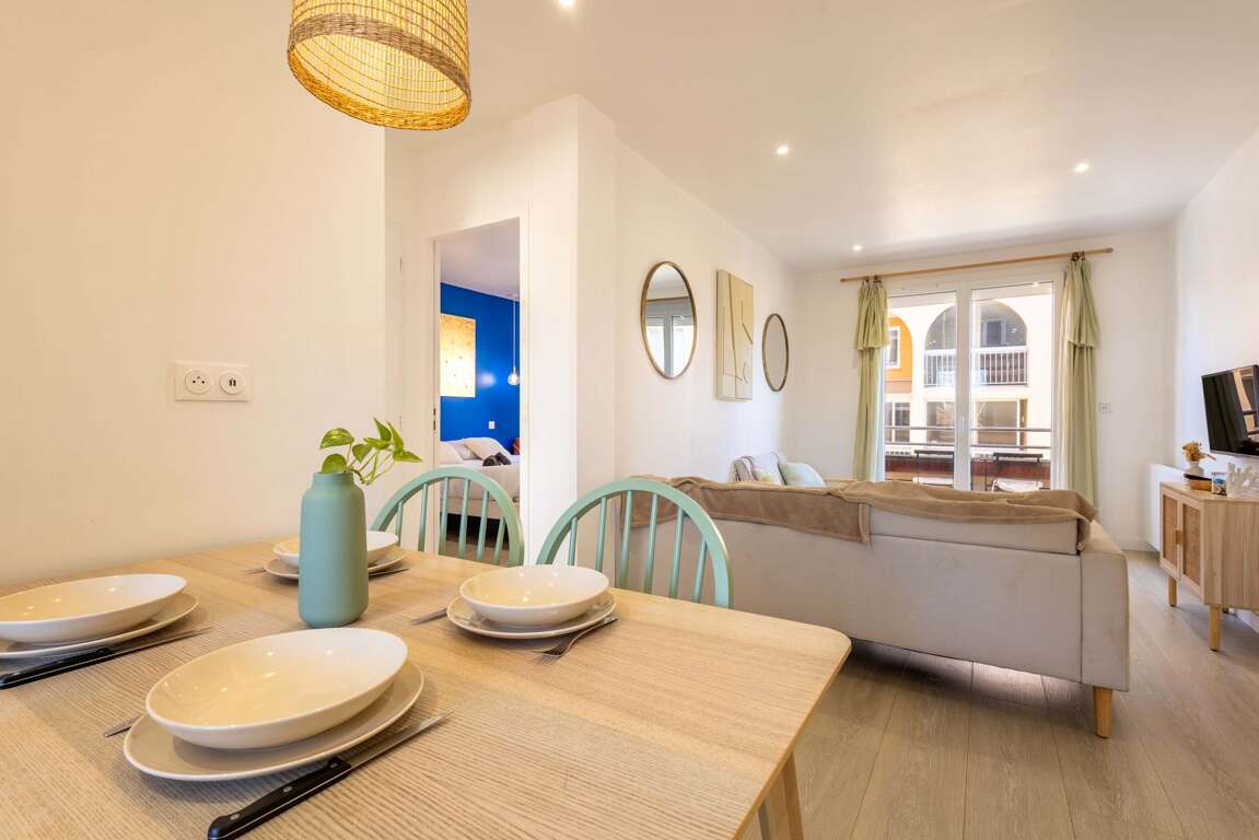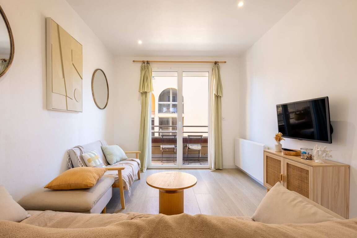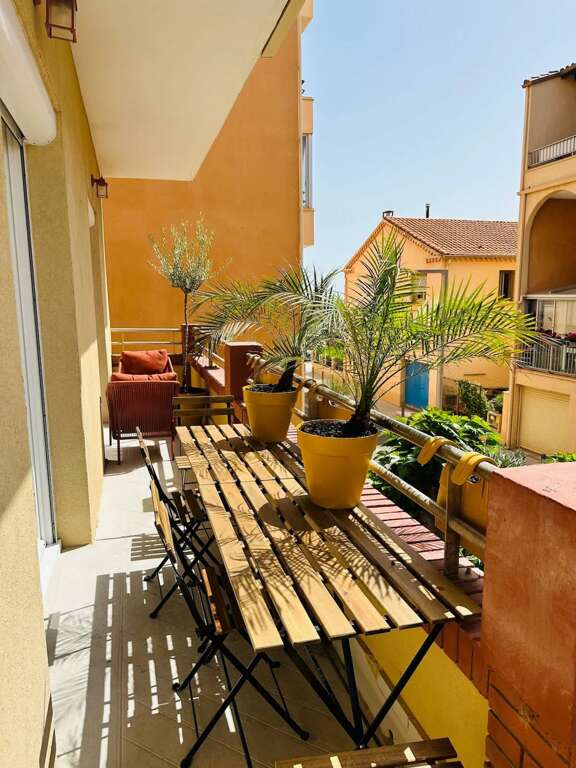 Renovated 2-bedroom apartment vacation rental in Valras-Plage with a balcony and side sea view, near the beach, harbour, market, and pedestrian centre.