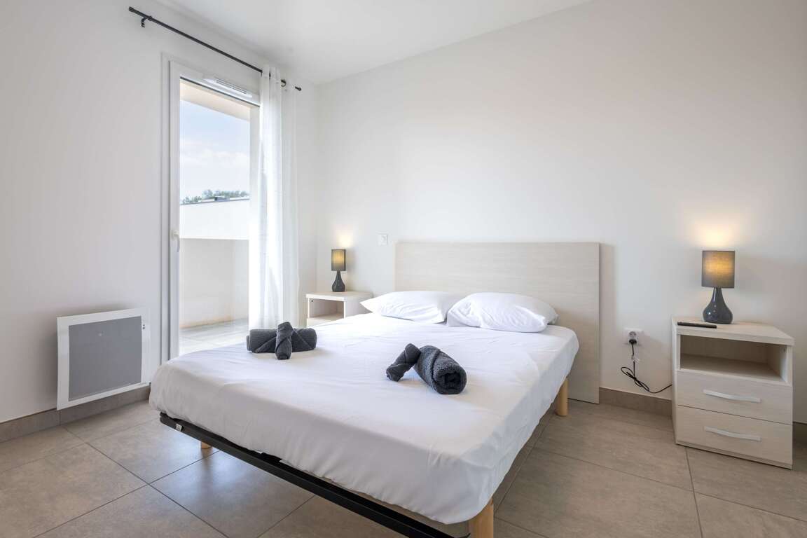 Modern, air-conditioned apartment located in the secure Naia residence in Sérignan. Enjoy a furnished terrace, Wi-Fi, private parking and a summer pool. Just a few minutes’ walk from the beaches and the center of Valras-Plage. Perfect for a comfortable stay with family or friends. The accommodation includes: Full access to the apartment Located in a quiet and modern residential area of Sérignan, appreciated for its peaceful atmosphere and proximity to shops, restaurants and local markets. Nearby activities: beaches, biking, water sports, jet ski, hiking "Check-in: 4 PM Our Valras’Loc team is available 7 days a week to assist you before, during and after your stay.