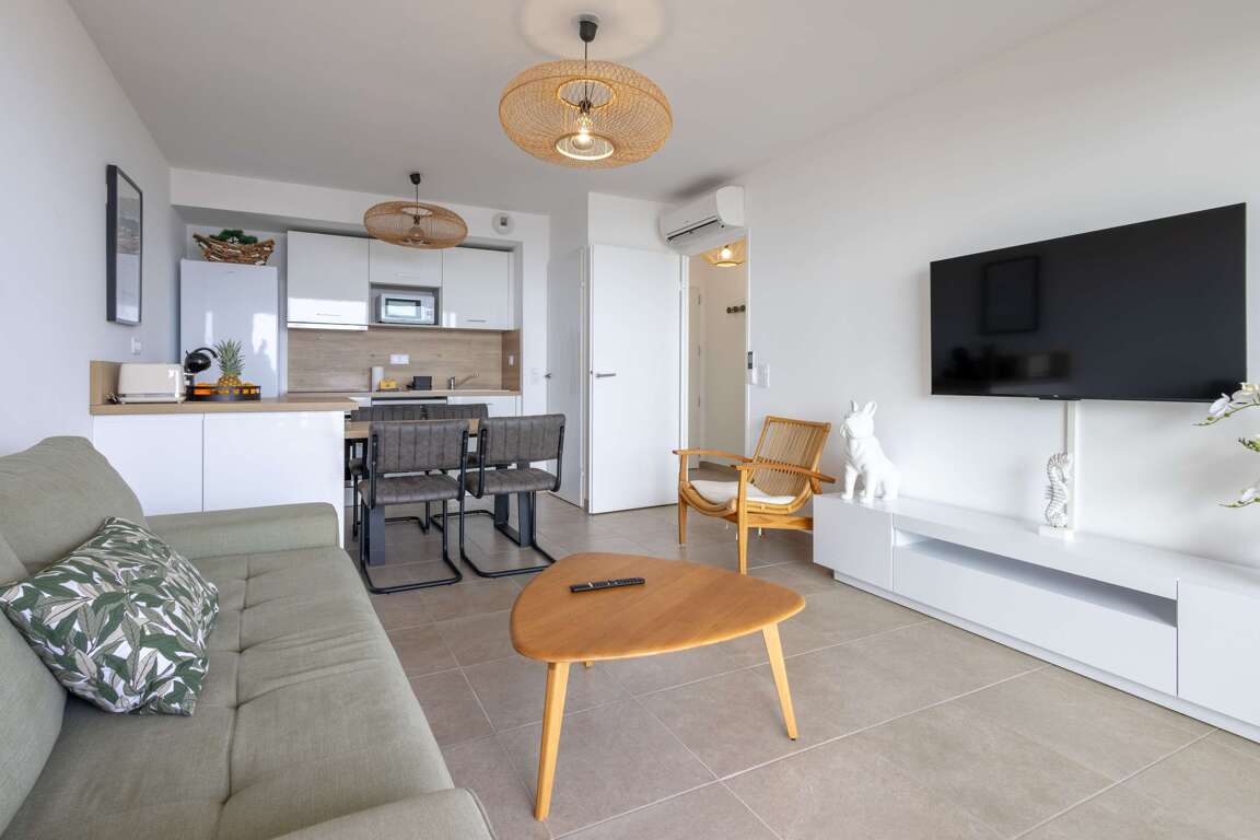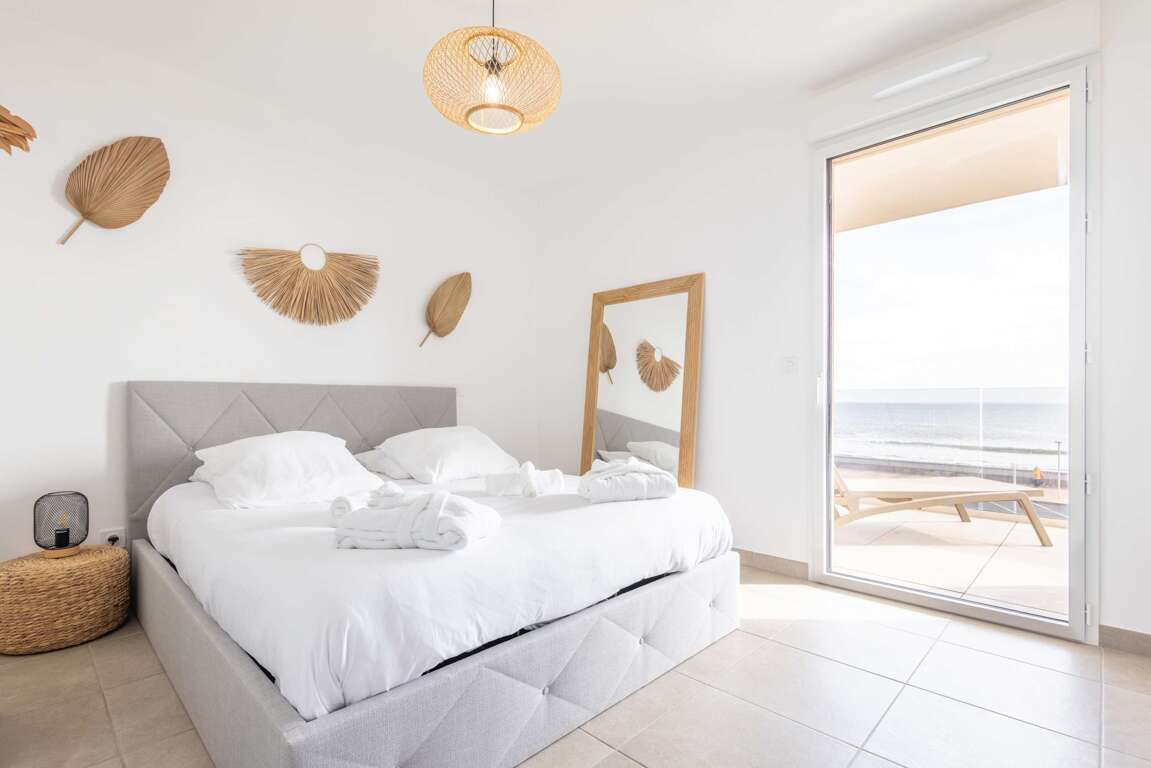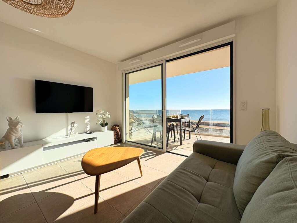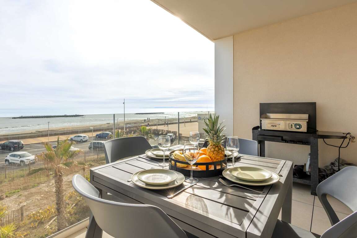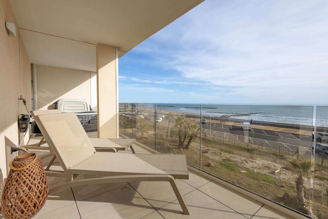 Modern 41 m² apartment vacation rental in Valras-Plage with a 25 m² sea-view terrace, jacuzzi, elevator access, fiber Wi‑Fi, and private parking.
