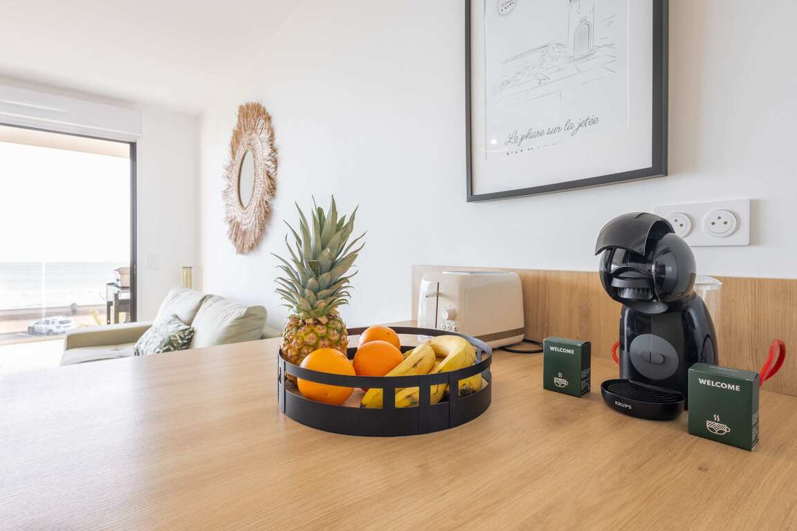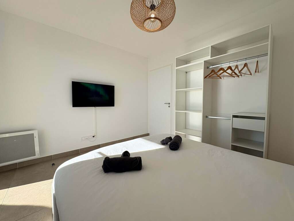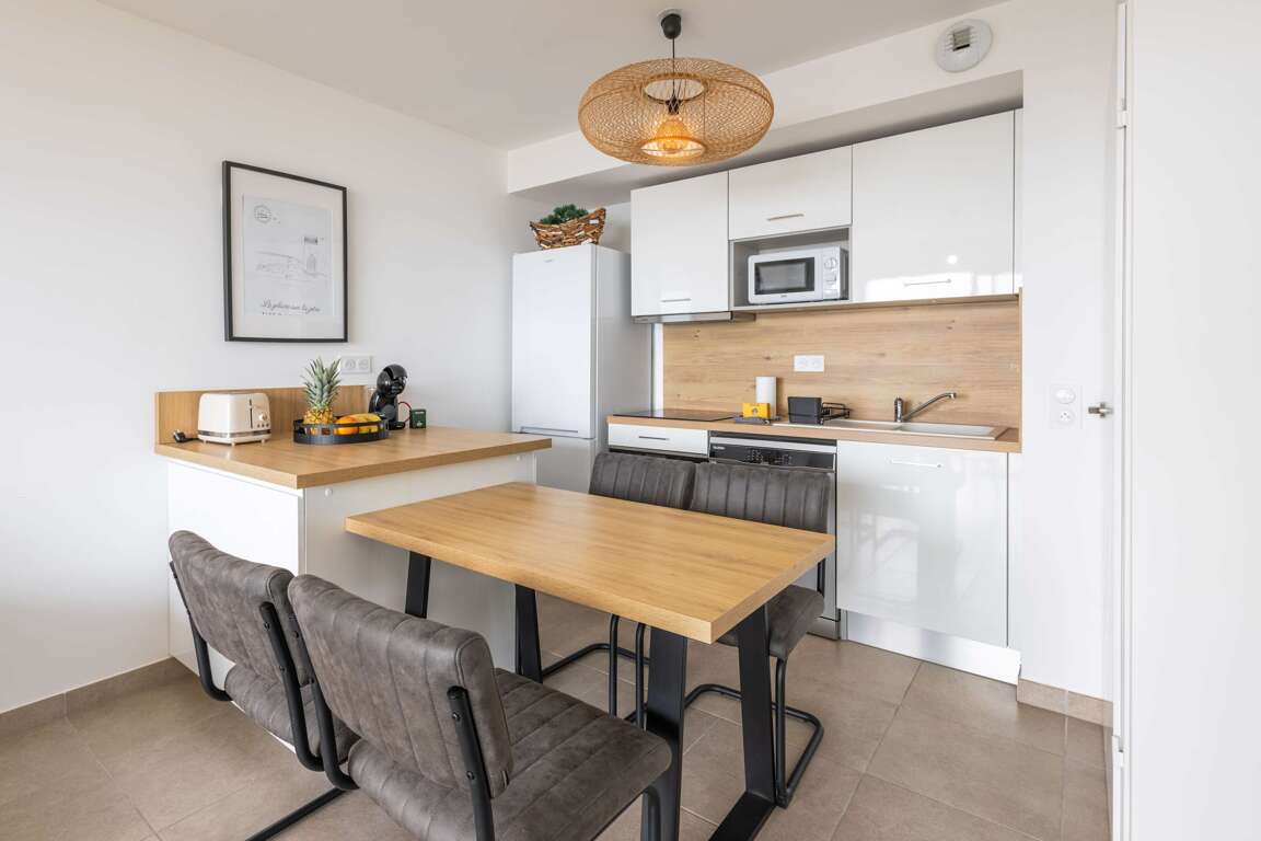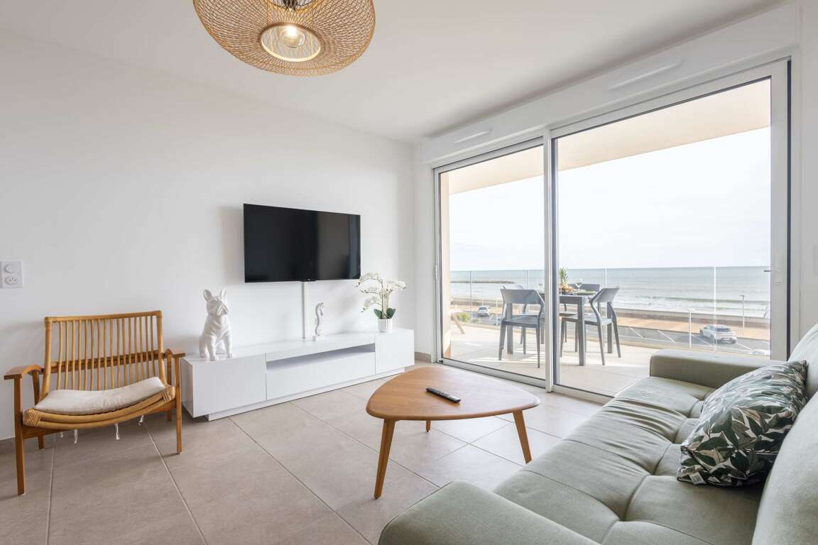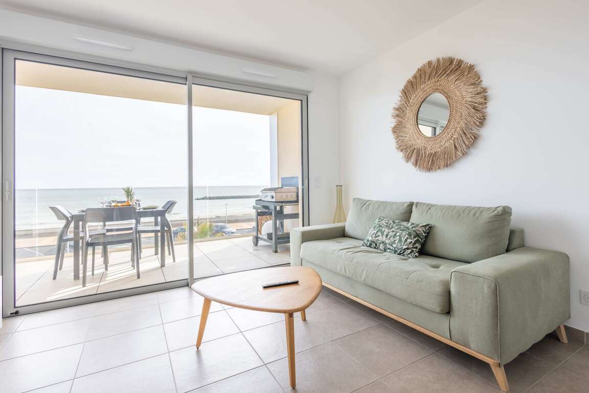 Modern 41 m² apartment vacation rental in Valras-Plage with a 25 m² sea-view terrace, jacuzzi, elevator access, fiber Wi‑Fi, and private parking.