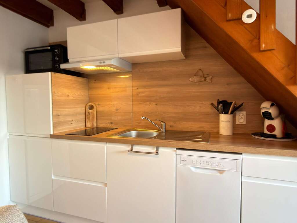 Fully equipped kitchen: Dolce Gusto coffee machine, dishwasher, microwave, oven, refrigerator and freezer, complete cookware and utensils
