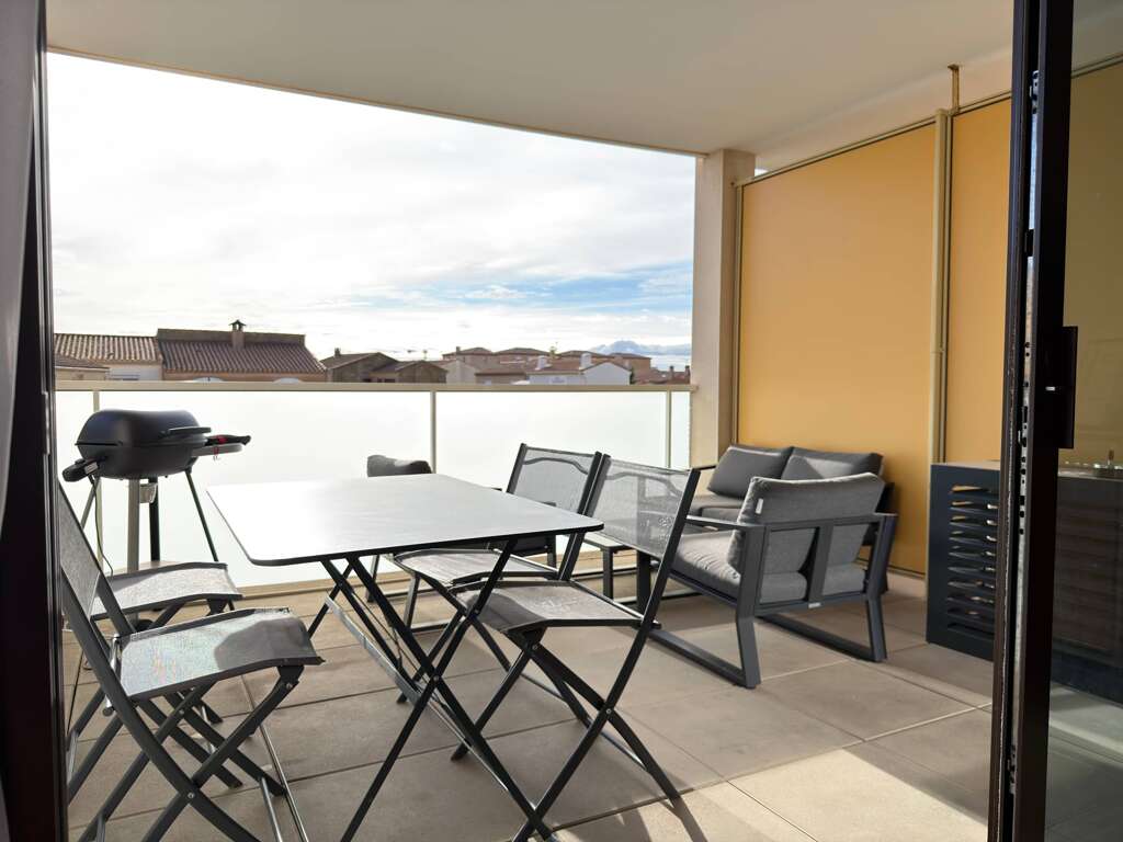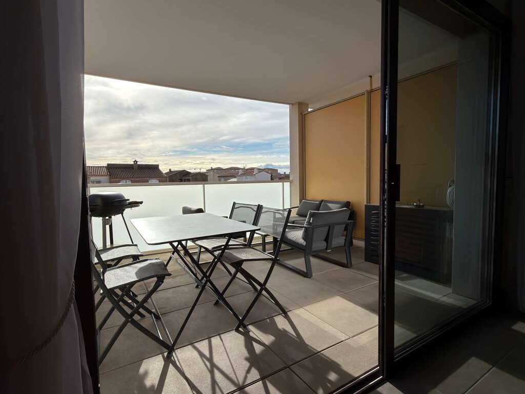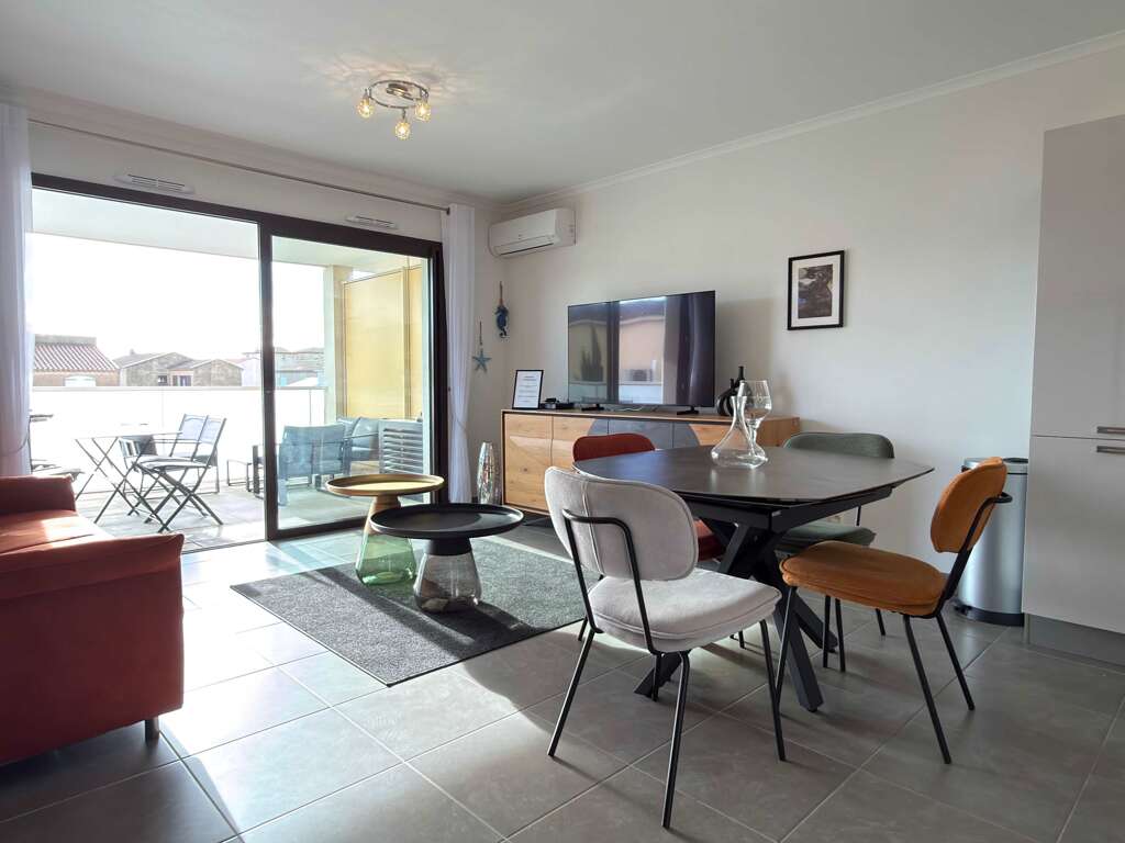 Wheelchair-accessible apartment vacation rental in Valras-Plage with private parking, AC, Wi-Fi, and a fully equipped kitchen, 300m from the beach.