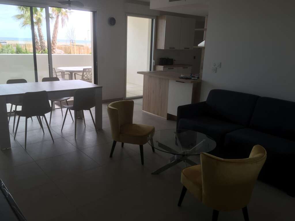 Ground-floor apartment rental with terrace and Mediterranean views in Valras-Plage, a practical vacation rental place to stay with AC, WiFi, and parking.