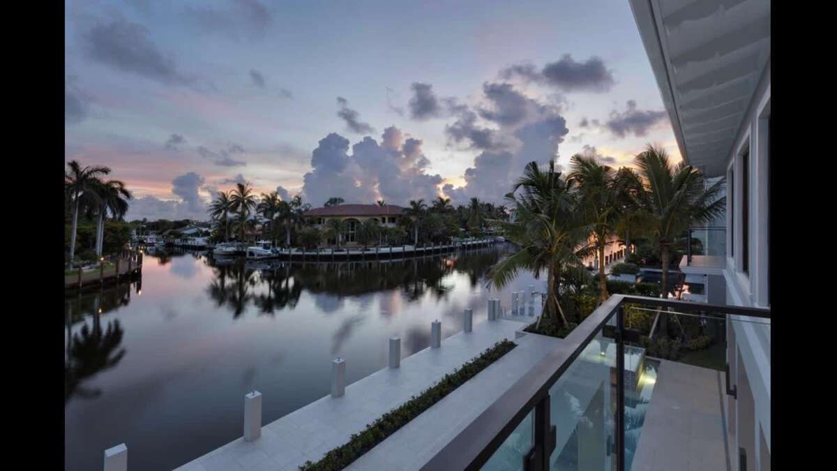 Waterfront villa rental in Lighthouse Point with 5 suites, heated pool, jacuzzi, and 260 ft dock on a quiet canal, minutes from the ocean inlet.