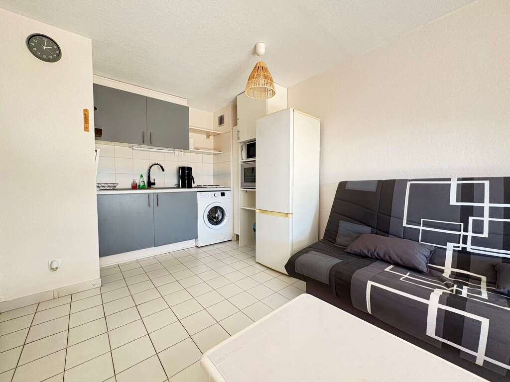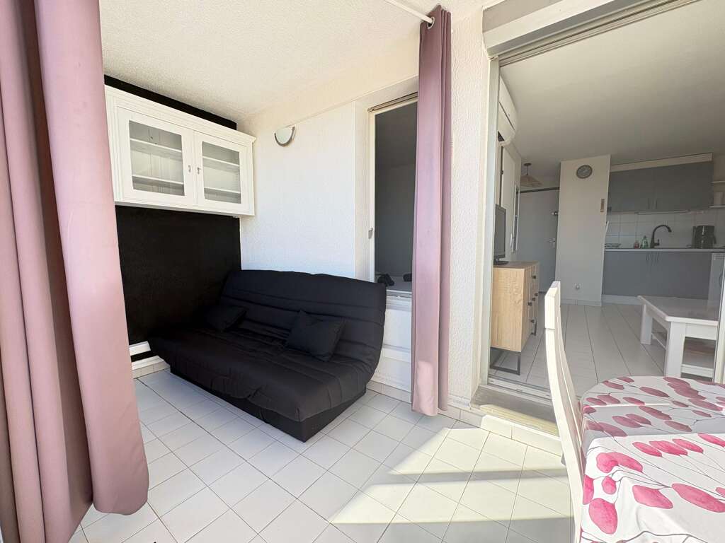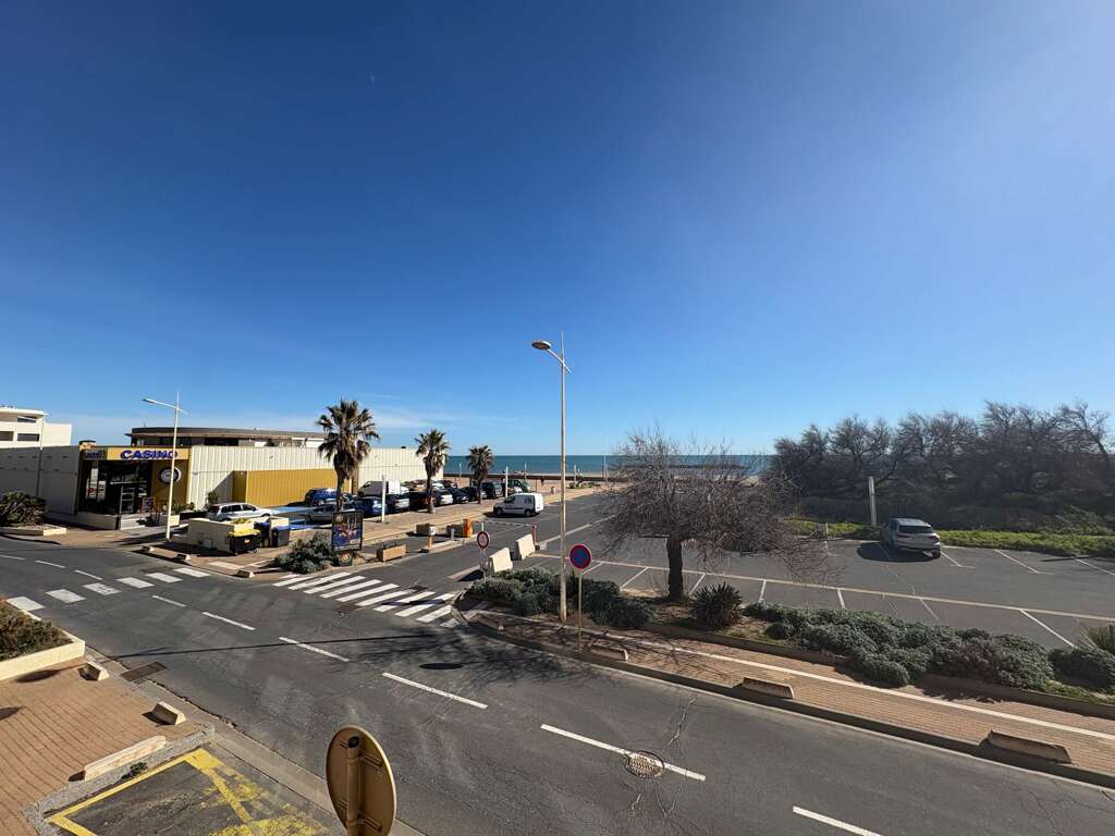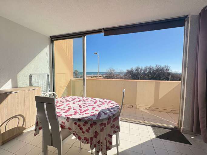 Apartment vacation rental in Valras-Plage with sea views, 1 bedroom plus sofa bed for up to 4, balcony and loggia dining, near shops and restaurants.