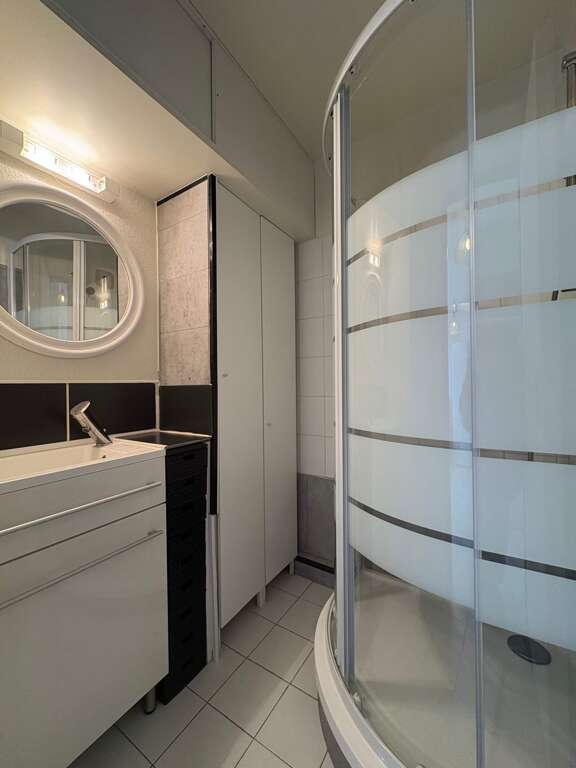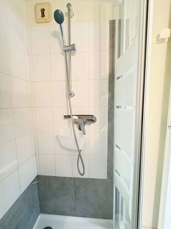 Bathroom with a recent shower cabin.