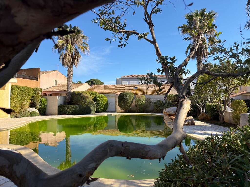 45 m² house in Valras-Plage with 2 bedrooms for up to 4, a private garden, parking, and shared pool access; beach is about 300 m away.
