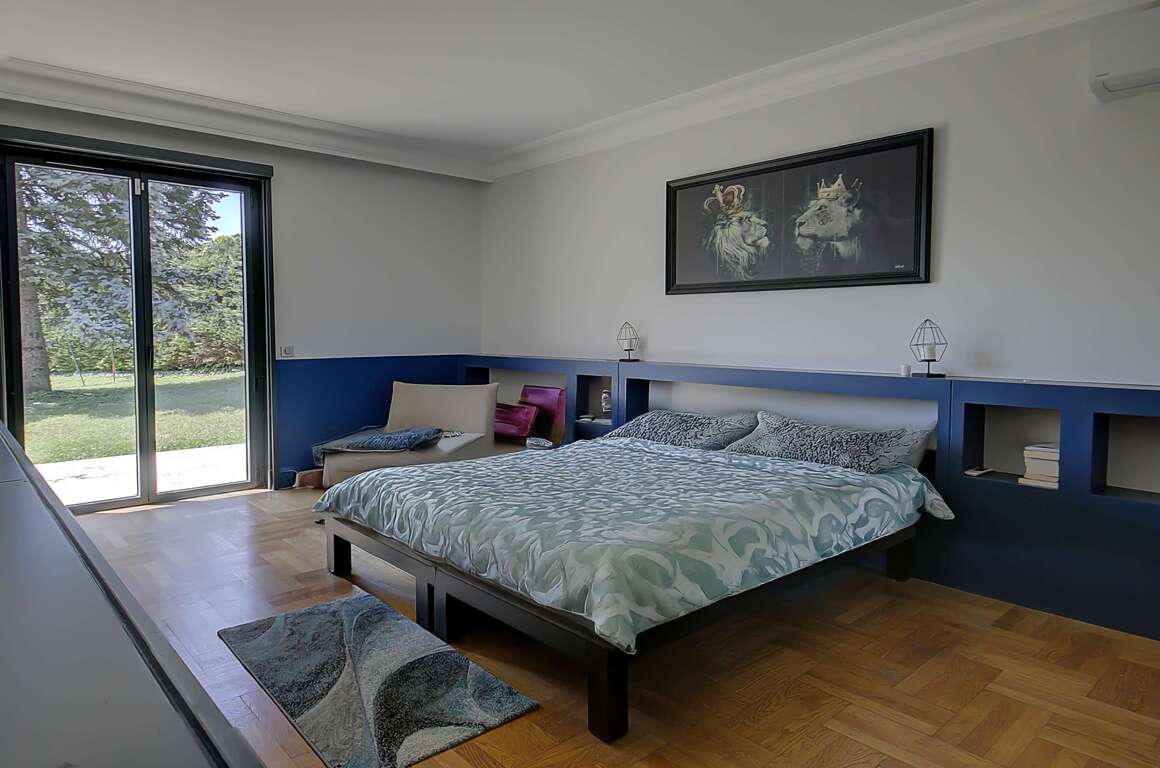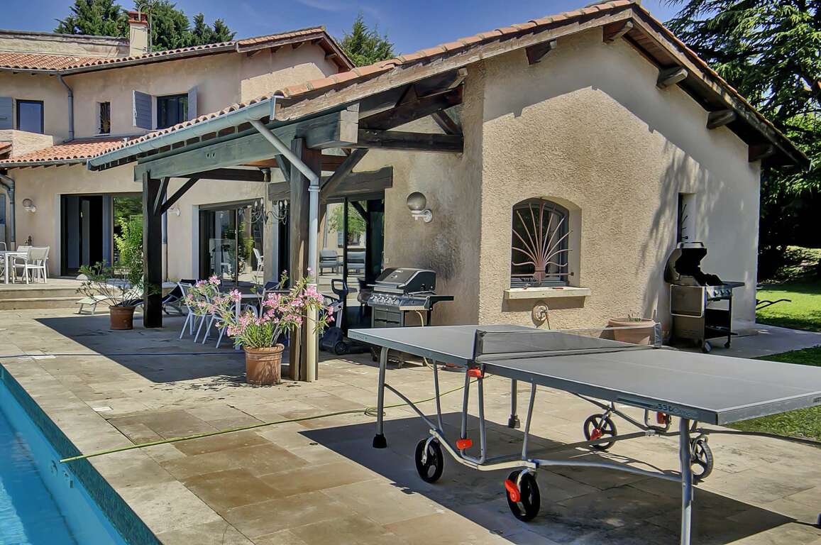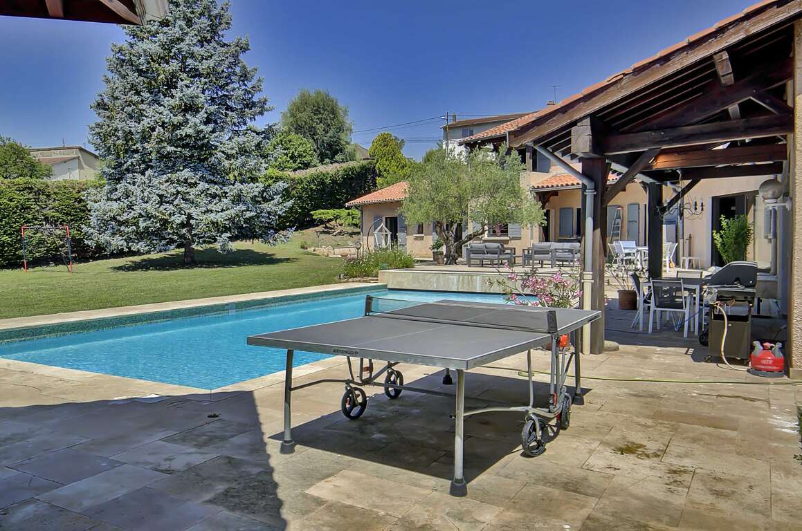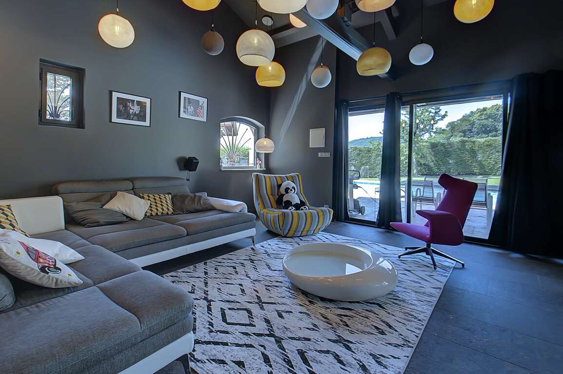 Architect-designed villa vacation rental in Fontaines-Saint-Martin with 4 bedrooms, a 12x6 pool, cinema room, and game space near Lyon.
