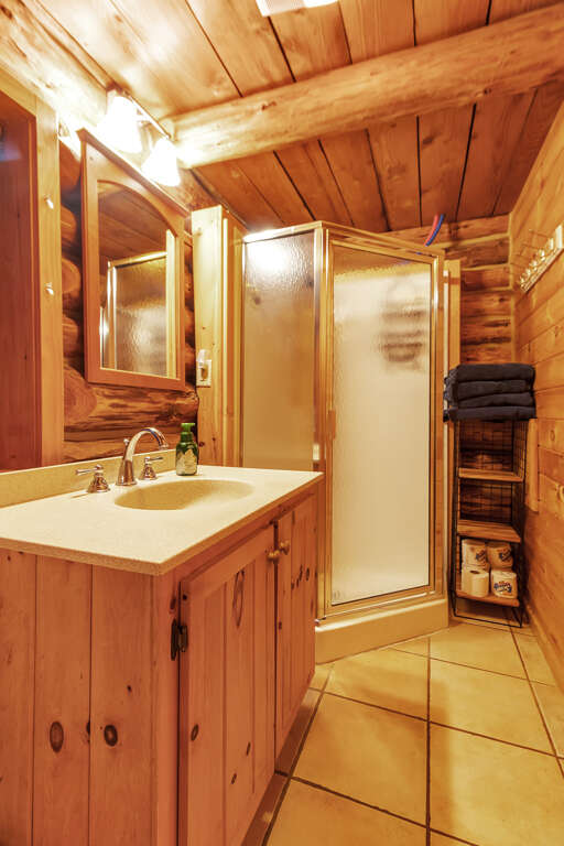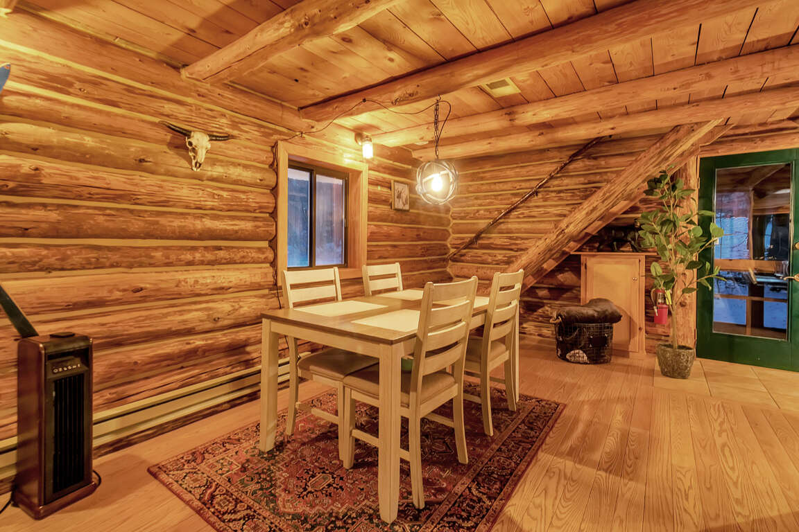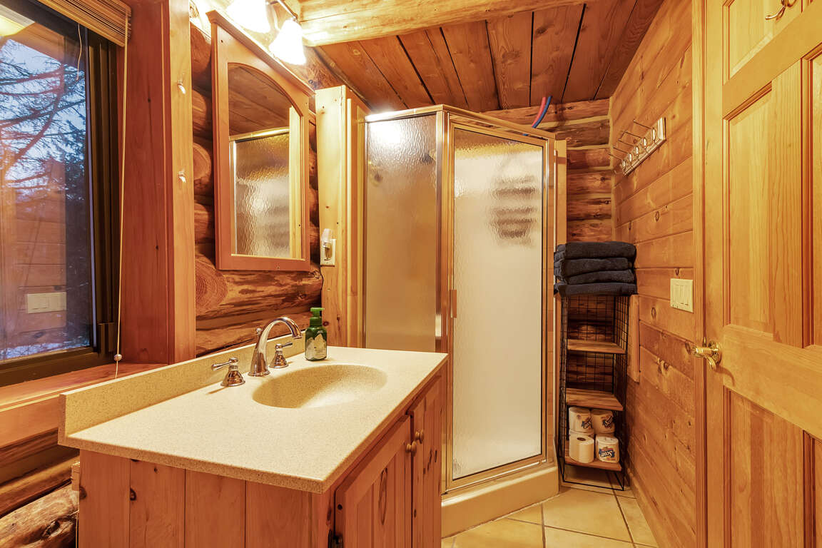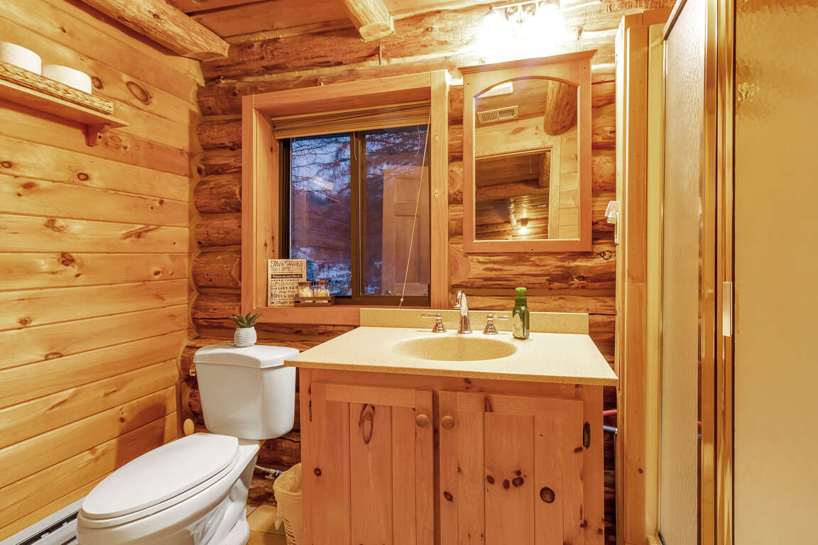 Pine cone cabin in woods, an authentic cabin with modern amenities