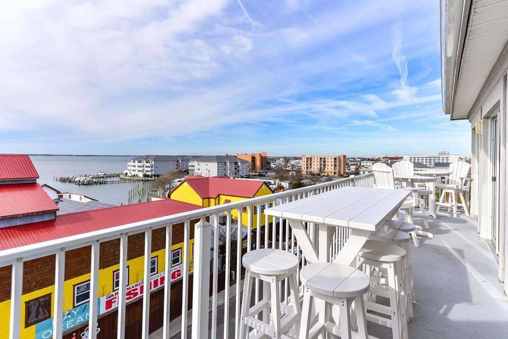 Situated along the bay, the luxurious Mariners Watch 405 - Ocean City, MD condo offers a serene retreat with stunning sunsets, spacious balconies for water views, and a host of modern amenities to accommodate up to 14 guests. The spacious balcony provides an ideal setting to enjoy waterfront views, creating a tranquil atmosphere for relaxation. Overlooking the bay, guests can witness beautiful sunsets and serene mornings from the comfort of this well-appointed condo. Adjacent to FishTales restaurant/bar and a charter fishing boat business, guests have convenient access to dining and entertainment options. The scenic location is in close proximity to the beach and boardwalk, making it an ideal spot for accommodating a large group seeking a peaceful getaway with breathtaking views.