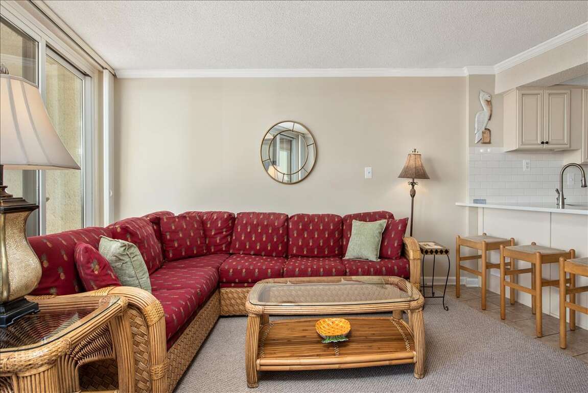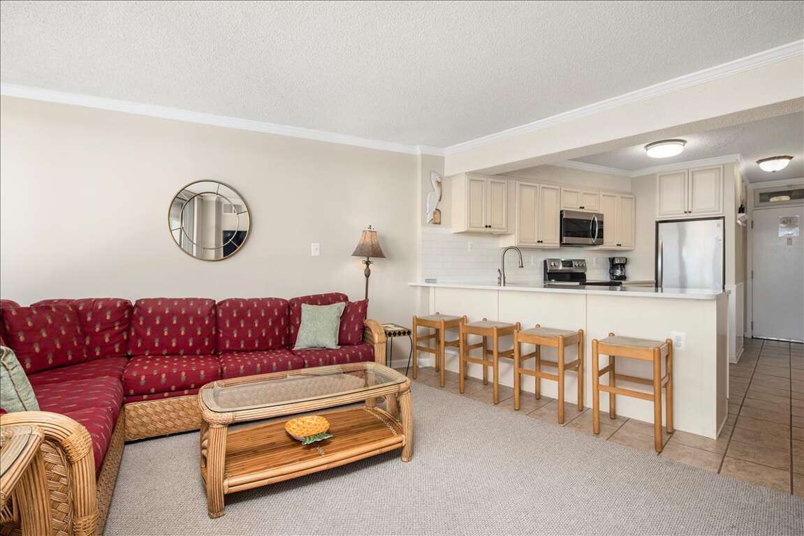 Enhancing the experience of staying at the luxurious Antigua 308 condo in Ocean City, Maryland are its two elegantly appointed bedrooms and a range of upscale amenities for up to six guests to enjoy. The condo boasts modern accommodation amenities such as a fully equipped kitchen, spacious living area, dining space, and multiple bathrooms for convenience. Guests can relax on the private balcony and take in scenic views of the surrounding area, including glimpses of the ocean. The master bedroom offers a comfortable retreat, while the second bedroom provides flexibility for families or groups. With tasteful decor and a focus on comfort, the Antigua 308 condo guarantees a relaxing stay with beautiful vistas enhancing the overall experience.