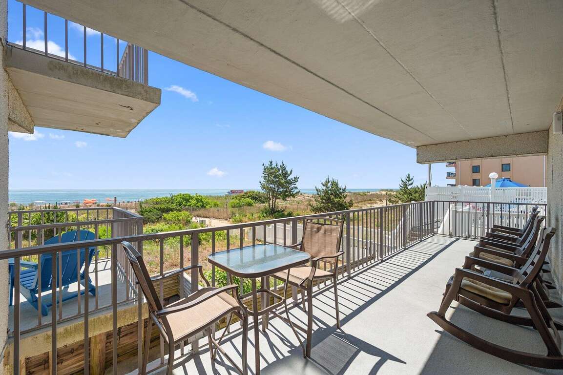 Indulge in the luxury of Sea Terrace 102, a stunning 2-bedroom condo in Ocean City, MD. Newly renovated, this condo features direct ocean views, a heated outdoor pool, and a private balcony, just steps from the sandy shores. Inside, revel in a spacious layout with a fully equipped kitchen, full-size washer and dryer, and central air conditioning to accommodate up to 8 guests. Located in Ocean City, MD, detailed availability, rates, and booking procedures can be found on Resort Rentals' website. Explore exclusive savings for direct bookings and exceptional service. Discover more about this seaside oasis.